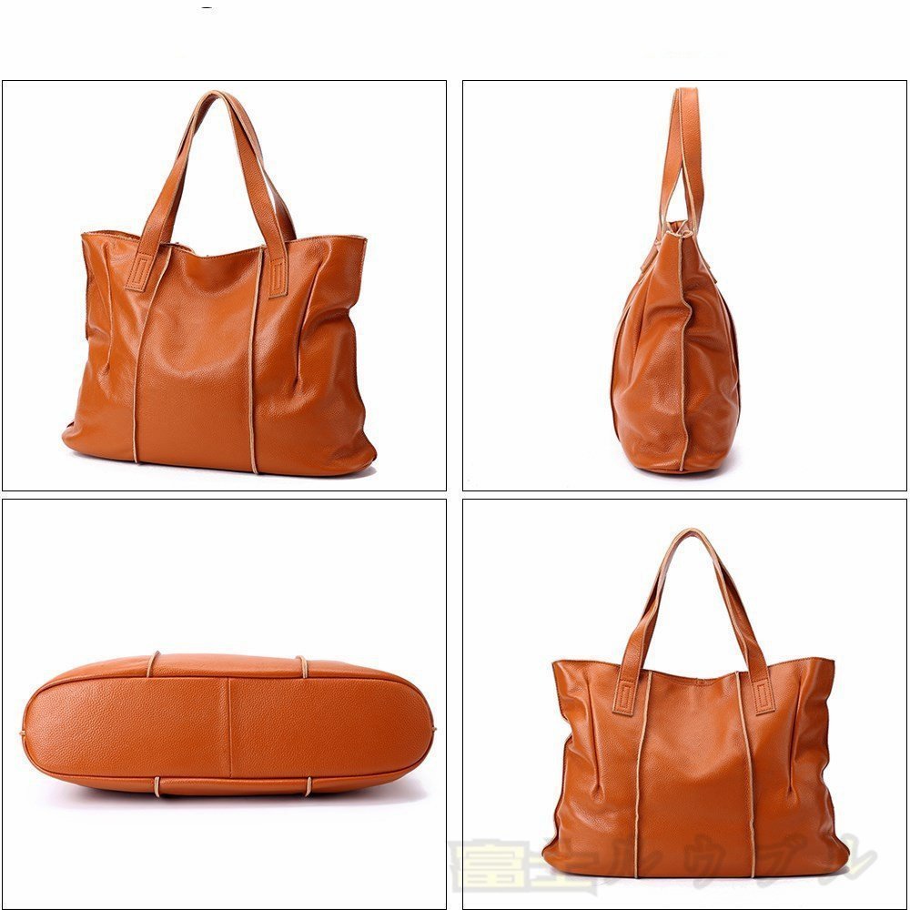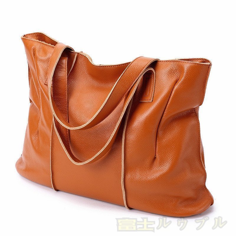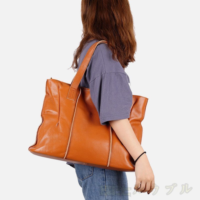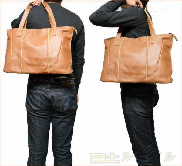 実用☆ 全本牛革 バッファローレザー トートバッグ 極厚本革 ブラウン 3室 大容量 A4/雑誌楽々収納 肩掛け