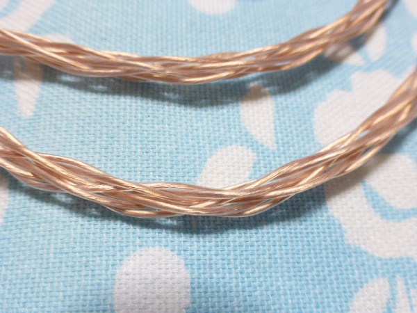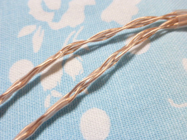 通常この線材は赤とクリアの2色なのですが、クリアな物だけを選別して作製した八芯ケーブルなのでとても銅線チックです。