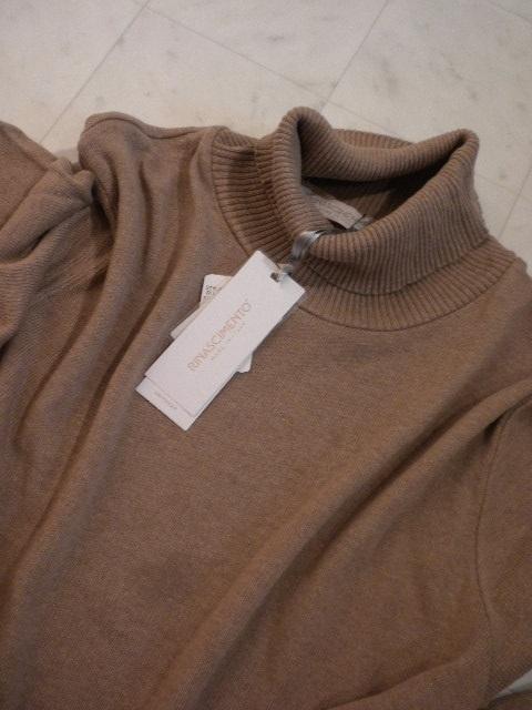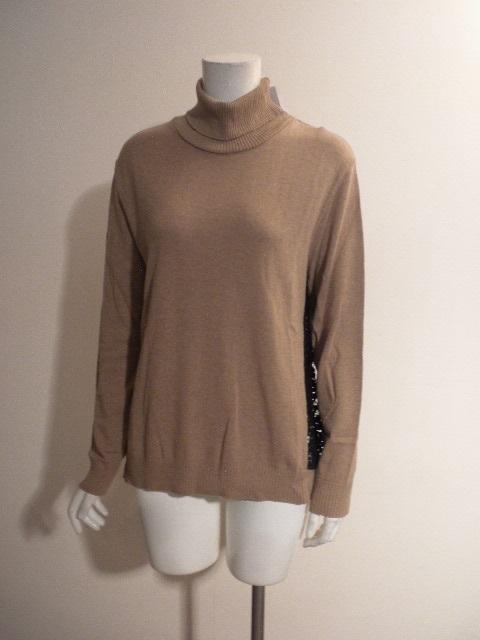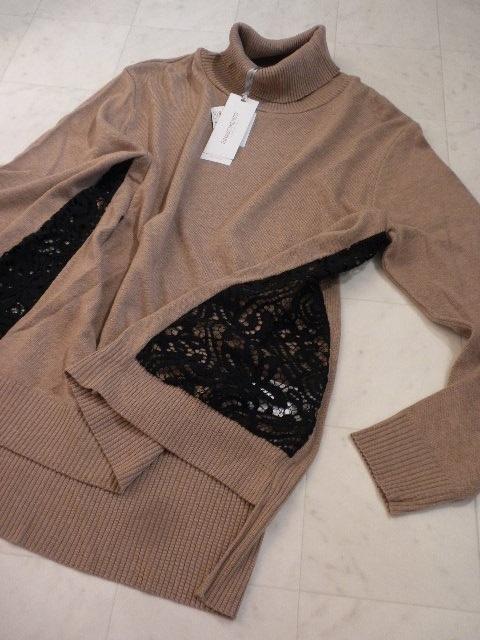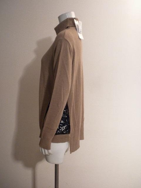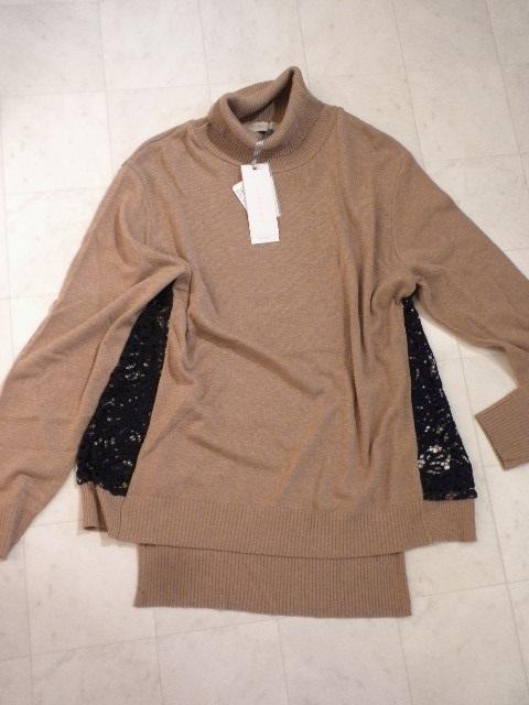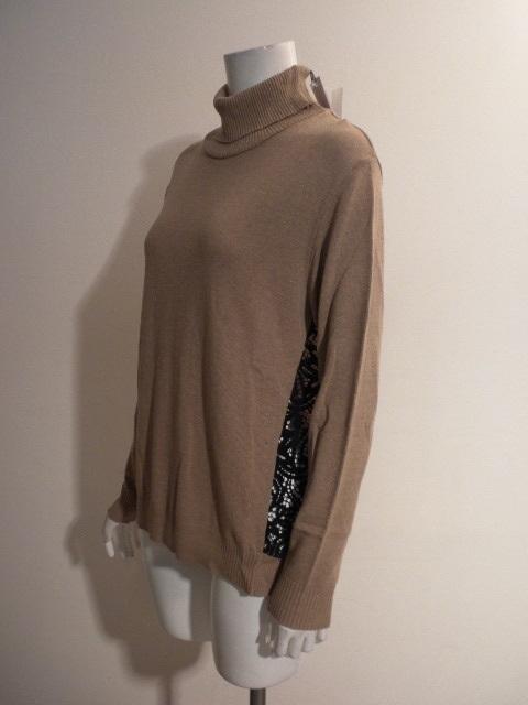 格安!新品☆彡ITALY『RINASCIMENTO』◆正規!リナシメント◆サイド黒レースが人気!お洒落キャメルベージュ”プルオーバーニット!