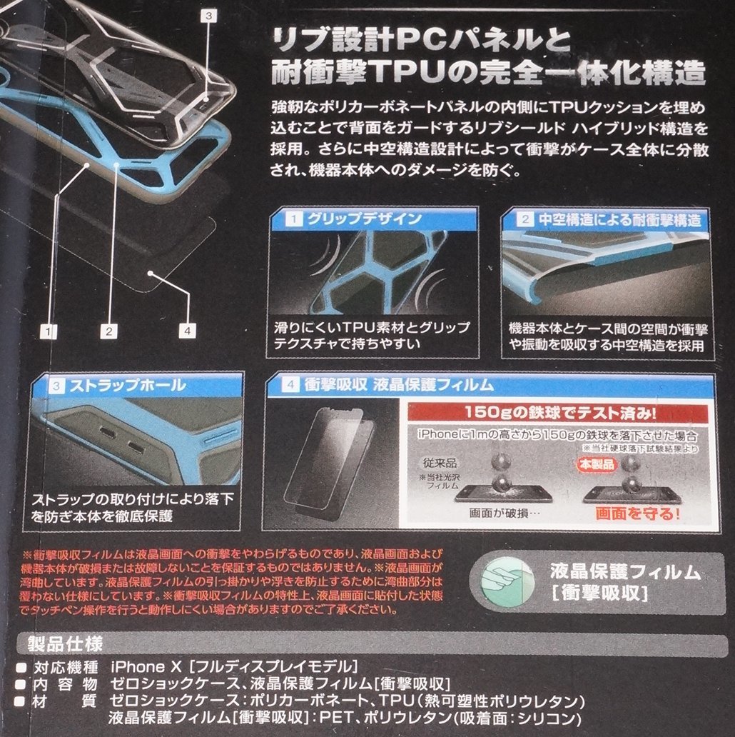 ELECOM iPhone X ZEROSHOCK シェルケース リブシールド(iPhoneXS対応) 新品・未開封です。