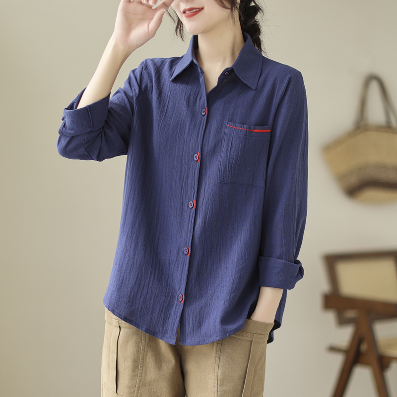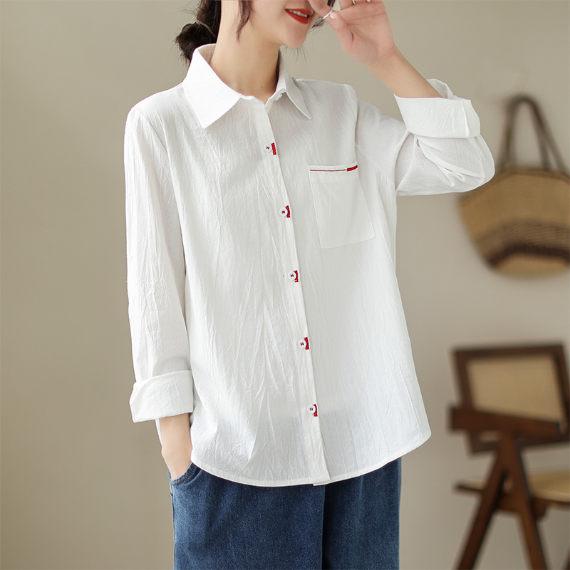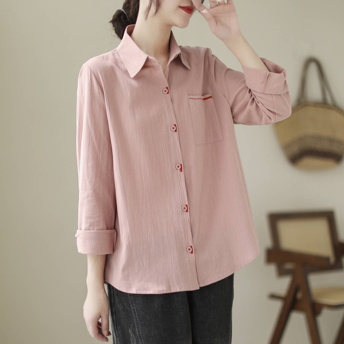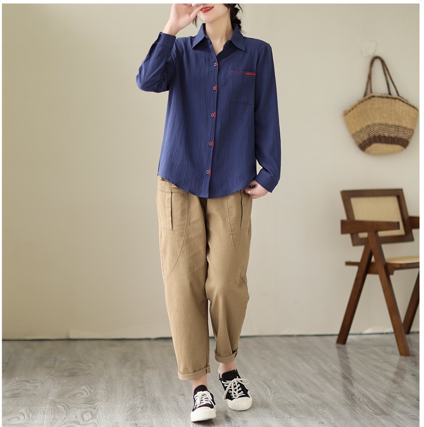 「同梱1万円送料無料」秋新作*カジュアル*オシャレ*ゆったり大きいサイズ*配色*刺繍*長袖シャツブラウス*M~XXL*ピンク