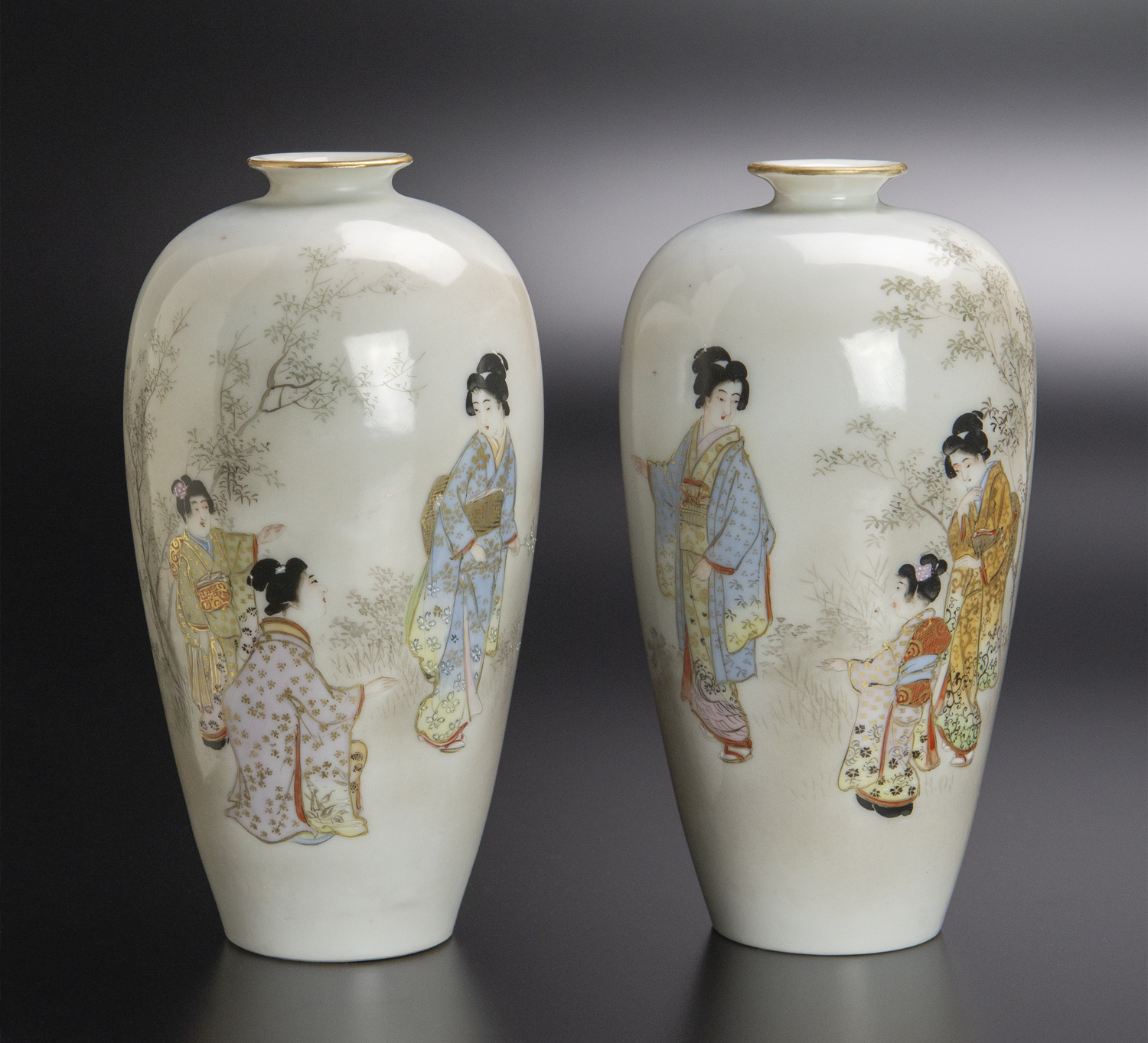 明治時代 色絵金彩美人図瓶 一対 九谷 庄三造 古美術