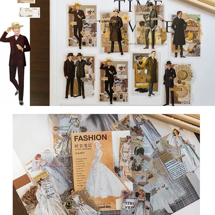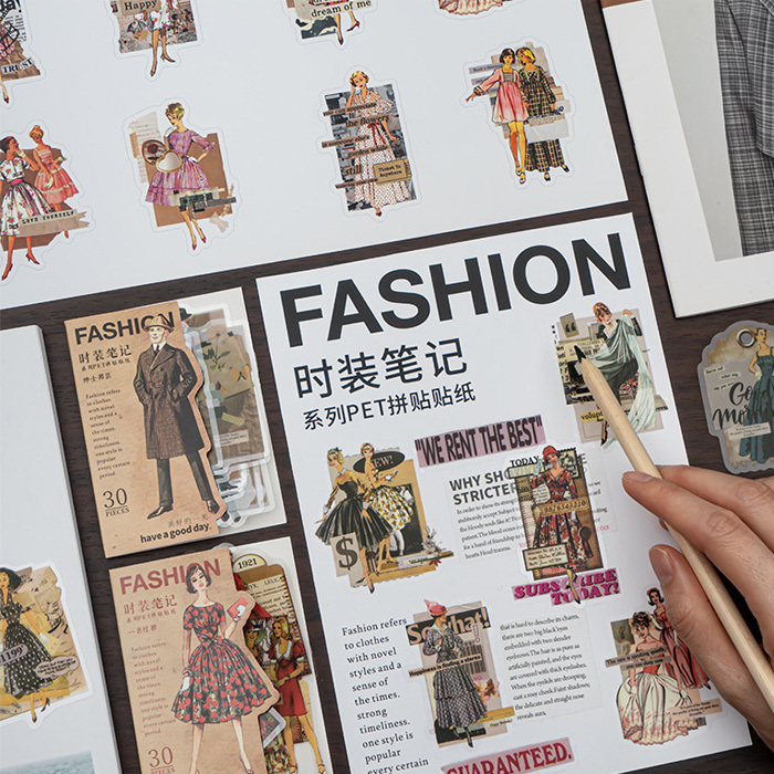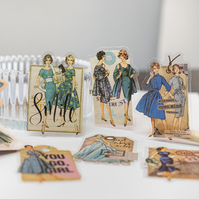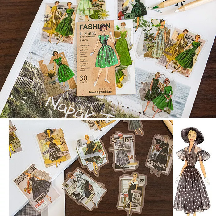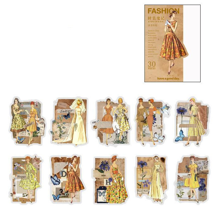 30枚 シール 女性 女の子 ファッション ドレス アンティーク ビンテージ デコステッカー アンティーク調 コラージュ レトロ 0783-6