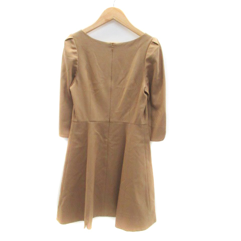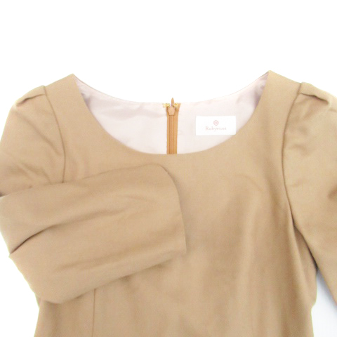 ルビーリベット Rubyrivet ワンピース ラウンドネック 七分袖 ミニ丈 ウール 36 茶色 ブラウン /HO13 レディース