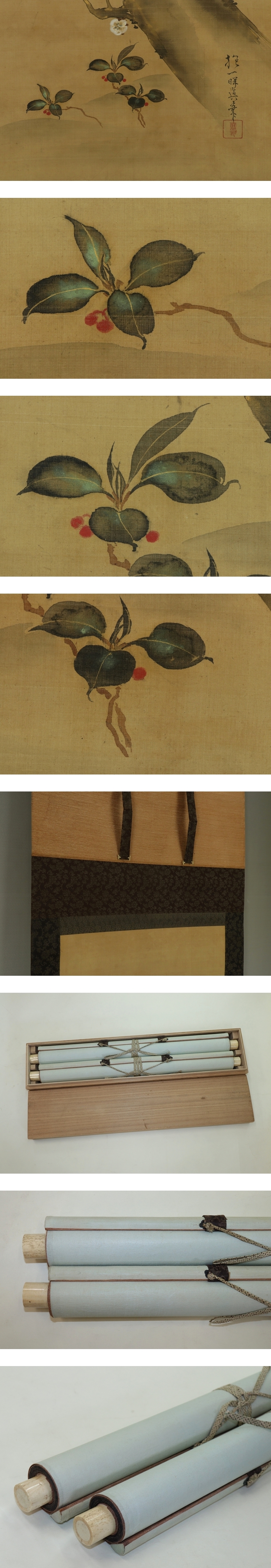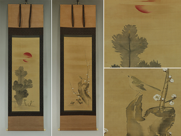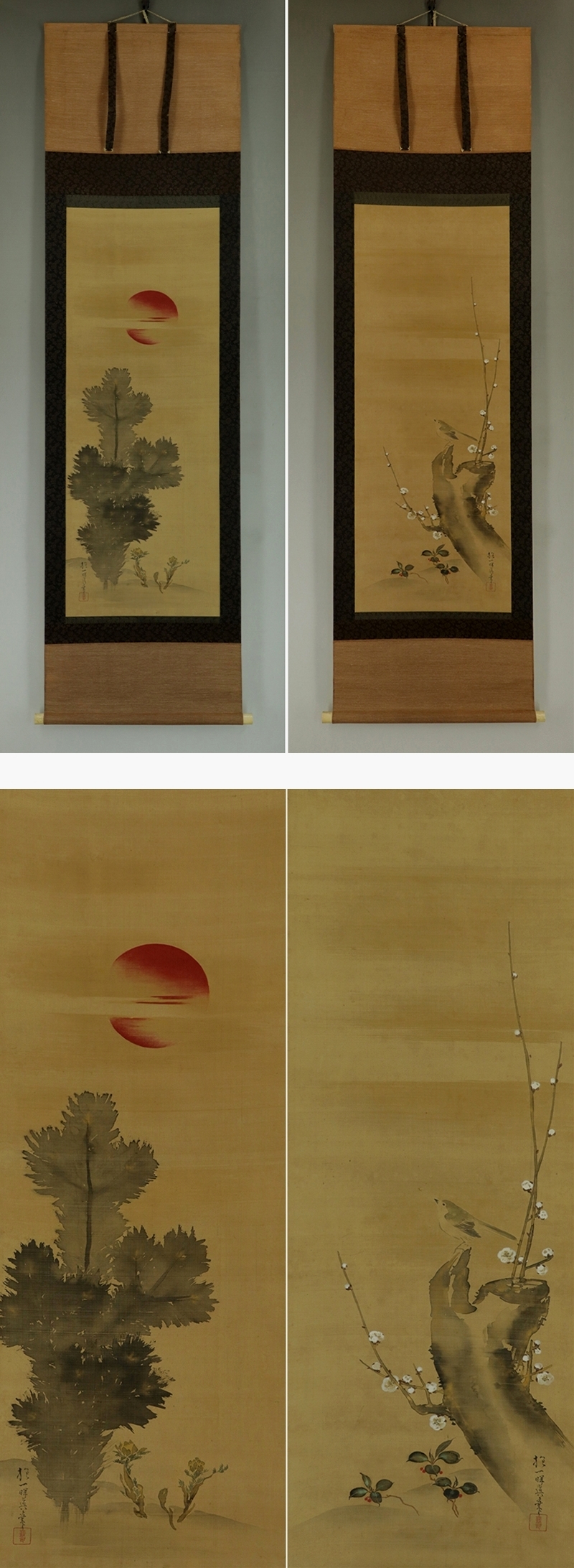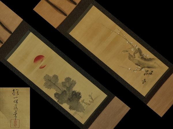 | №2303048【真作】酒井抱一【双幅・慶祝】◆絹本◆合箱◆掛軸 | |