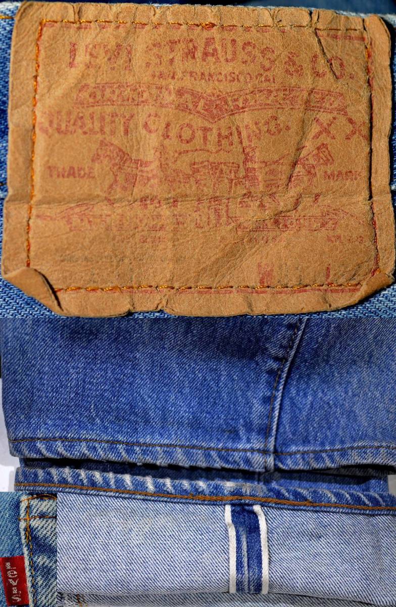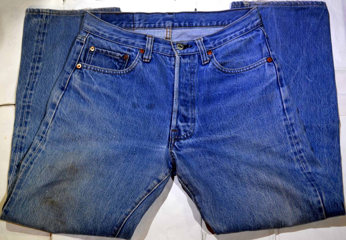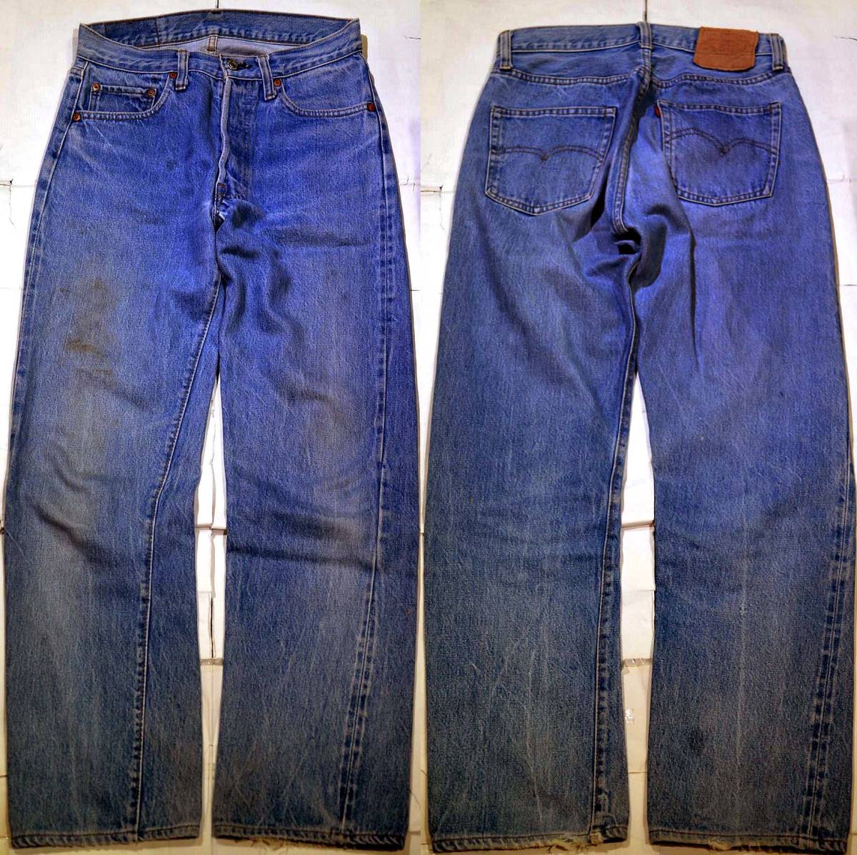 501の66後期です。復刻、レプリカではありません。『ディテール紹介』バックポケット裏チェーンステッチ、縮率8%、フロントトップボタン裏の刻印なし(6工場)、裾チェーンステッチ仕上げ。 『状態』スレ、キズなどUSED感があります。大きなダメージはなく、ヴィンテージとして良いコンディションだと思います。生地もしっかりしています。『色落ち、特徴など』程度良好の501 66後期です。66後期らしい粗い生地で、良い風合いです。クセがなく、ナチュラルな色落ちで、 合わせやすいと思います。まだまだガンガン穿いていただけます。気軽に穿けるヴィンテージとして如何でしょうか?