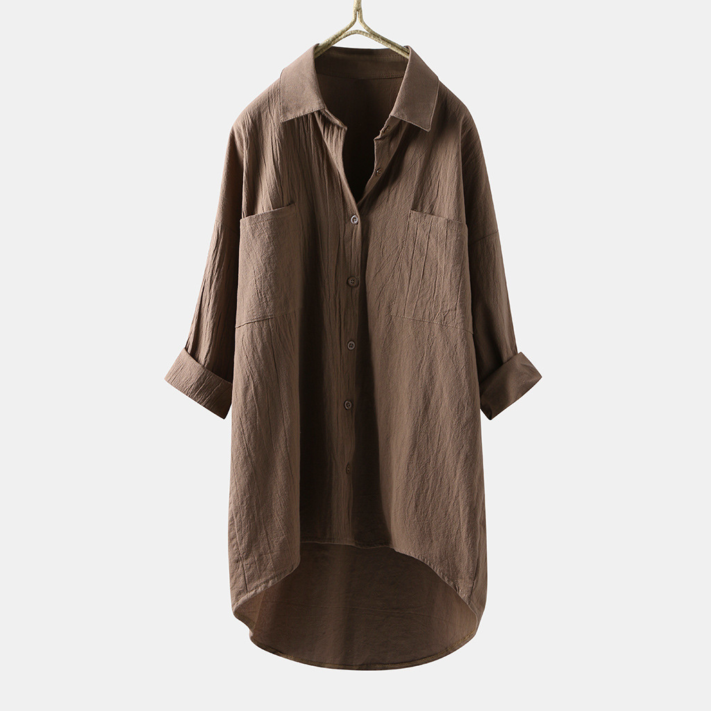「同梱1万円送料無料」秋新作**カジュアル*オシャレ*無地*不規則*ゆったり大きいサイズ*シャツブラウス*チュニック*緑*M