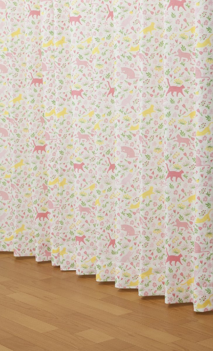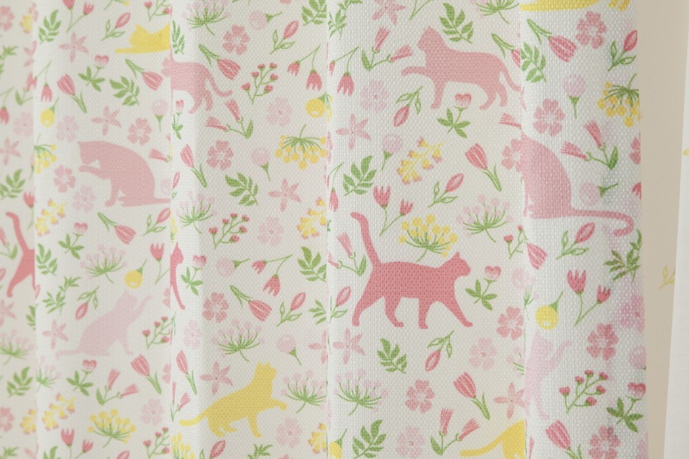 にゃんこ好き必見!かわいいにゃんこがデザインされたドレープ×レースのセットカーテン。
