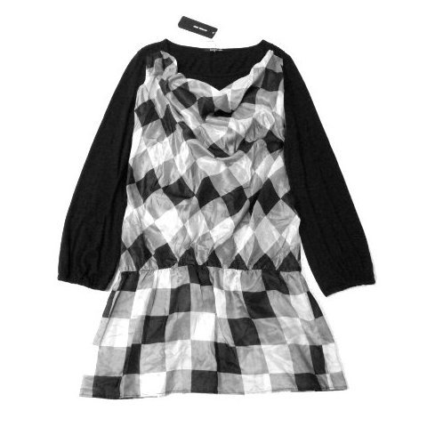 新品 定価17850円 maison grey メイソングレイ 絹 シルク ワンピース チュニック ロンT 長袖 黒 ビッキー