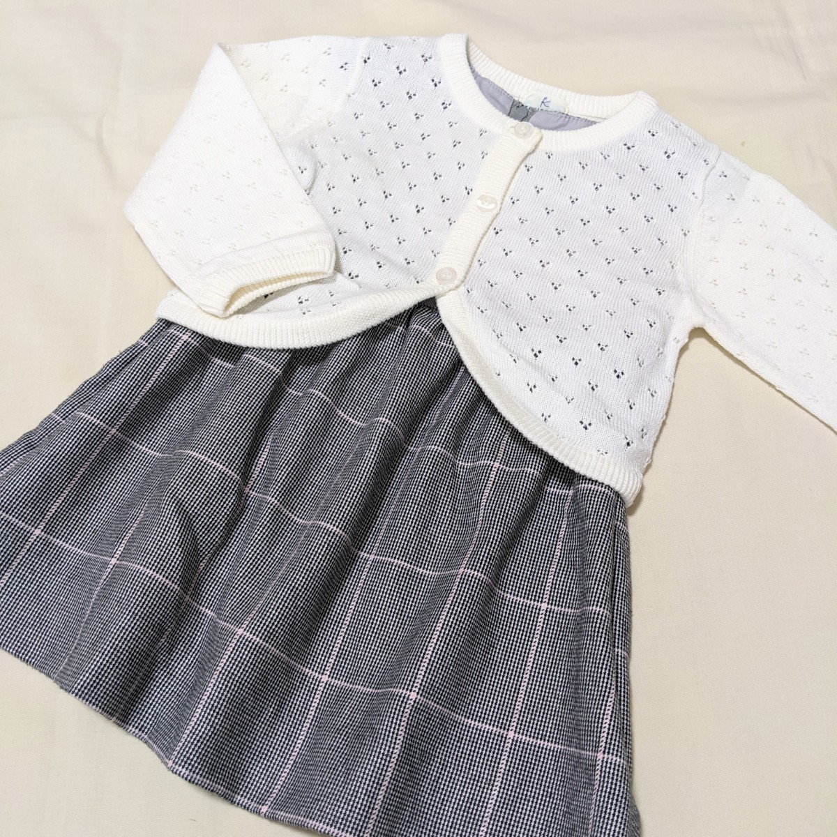 組曲のカーディガンと、ペアレンツドリームのジャンパースカートのセットです。