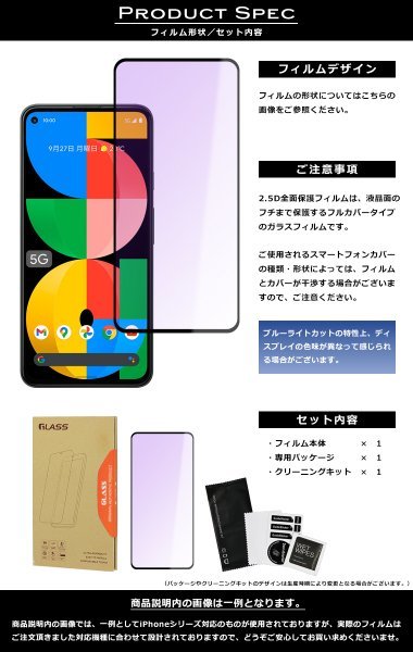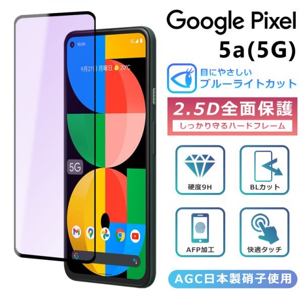 <ブルーライトカット> Pixel5a 5G フィルム 全面保護 2.5D 強化ガラスフィルム グーグルピクセル5a5g 液晶保護フィルム フルカバー 光沢