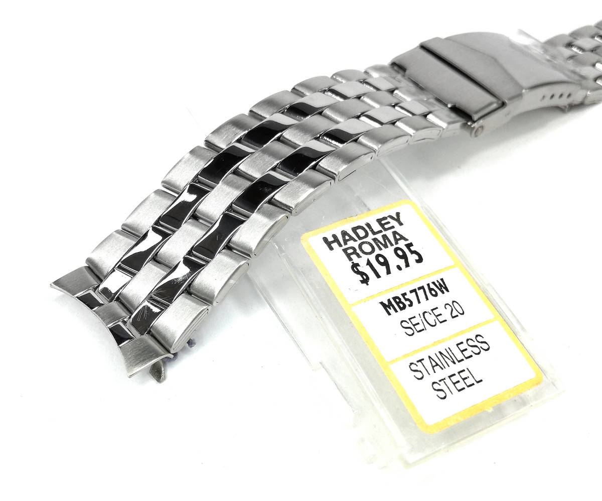 【HADLEY ROMA】 20㎜ デッドストック メンズウォッチバンド 弓カン 男性用腕時計ベルト ブレス バックルタイプ ステンレススチール MB1703