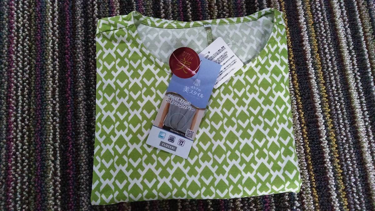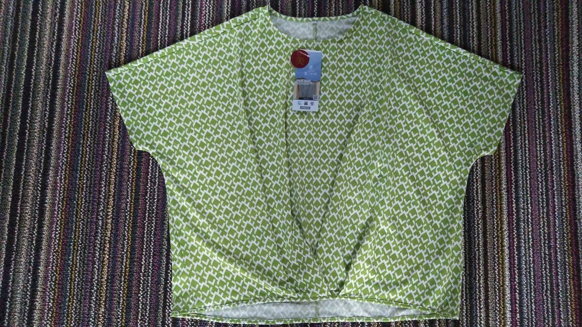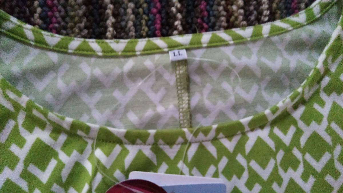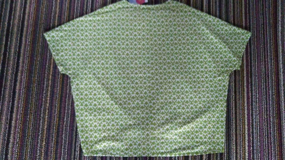 しまむら  レディース 半袖Tシャツ LL 黄緑計x白模様