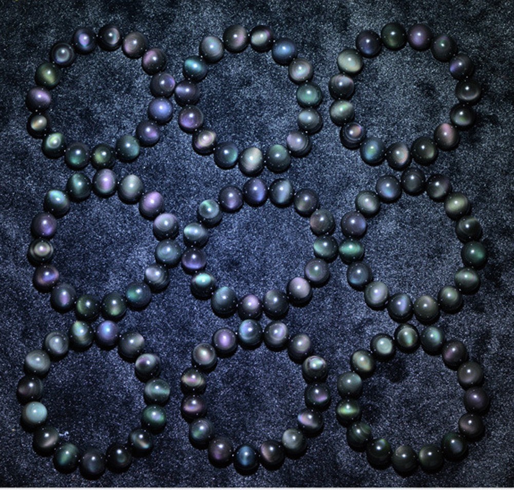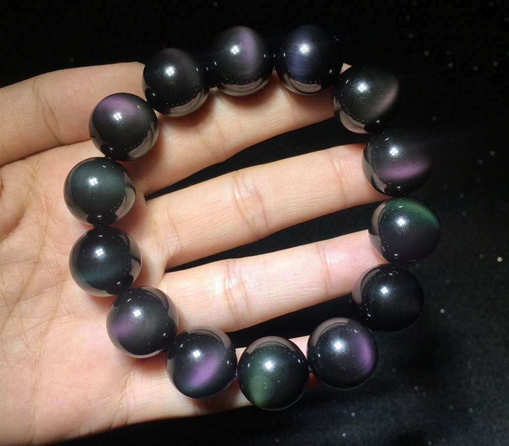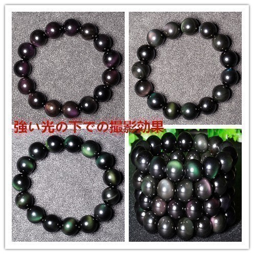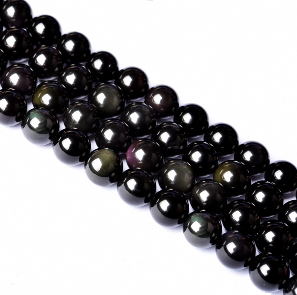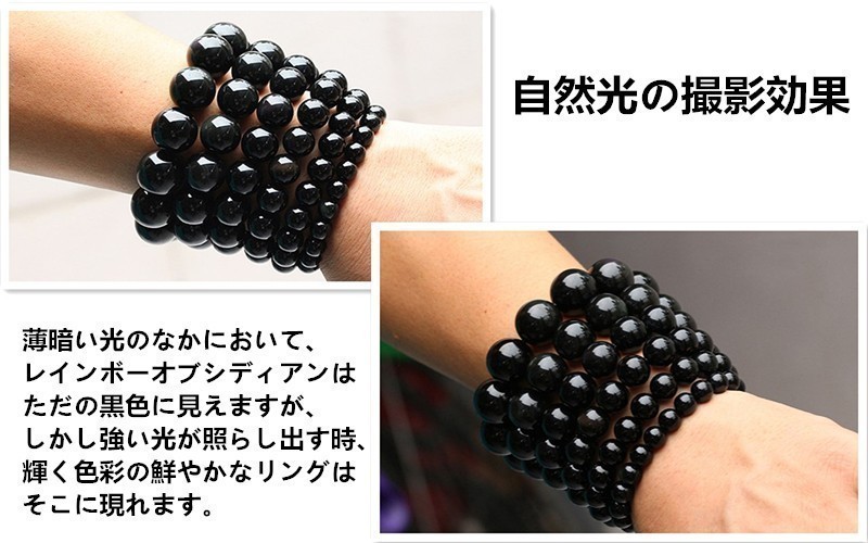 [EasternStar] 海外発送 7A レインボー オブシディアン 黒曜石 Rainbow Obsidian 玉サイズ12mm 1連売り 長さ約40cm