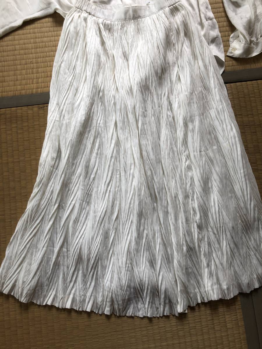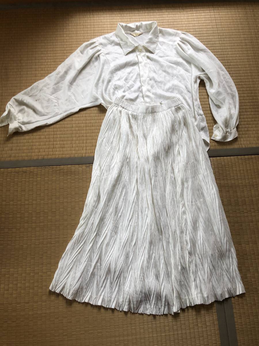 白いブラウスとプリーツ加工がされたスカートのセットアップです。