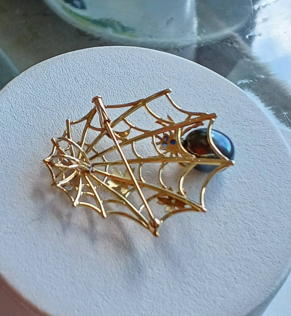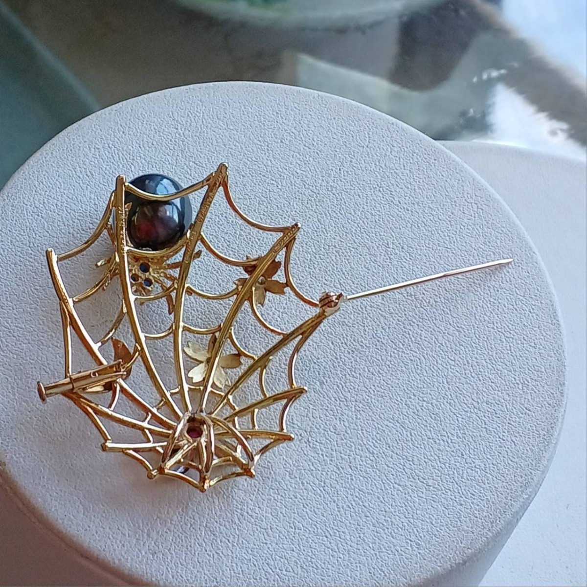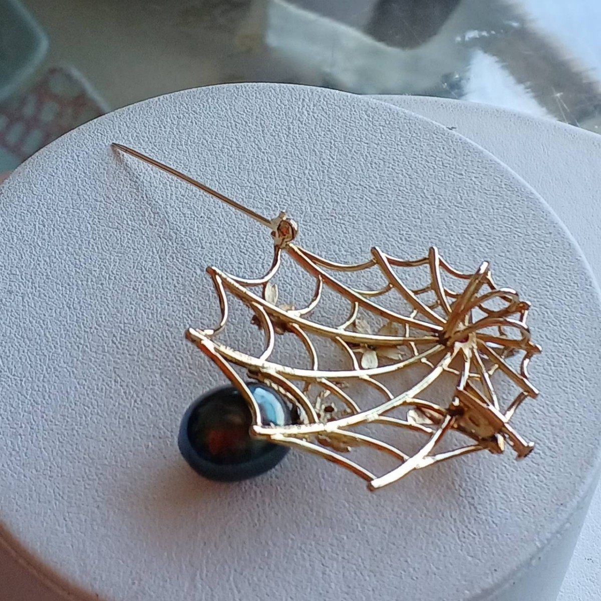 クモの巣デザイン黒蝶真珠ペンダント兼ブローチ