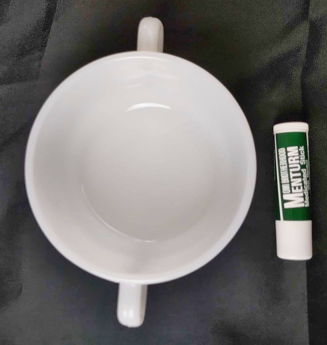 厚みがあってしっかりした造りの両持ち手がついたスープカップ。