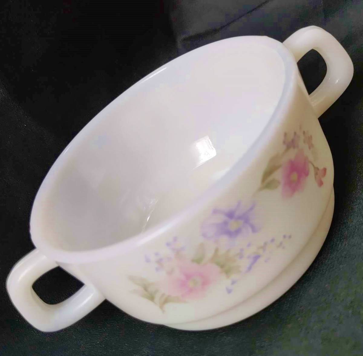 レトロ ミルクガラス ? スープカップ 花柄/スープボウル 古い グラス ガラス 白 ホワイト ヴィンテージ アンティーク ビンテージ 昭和