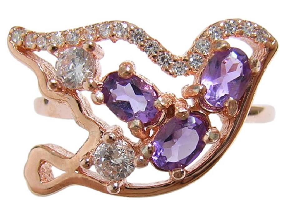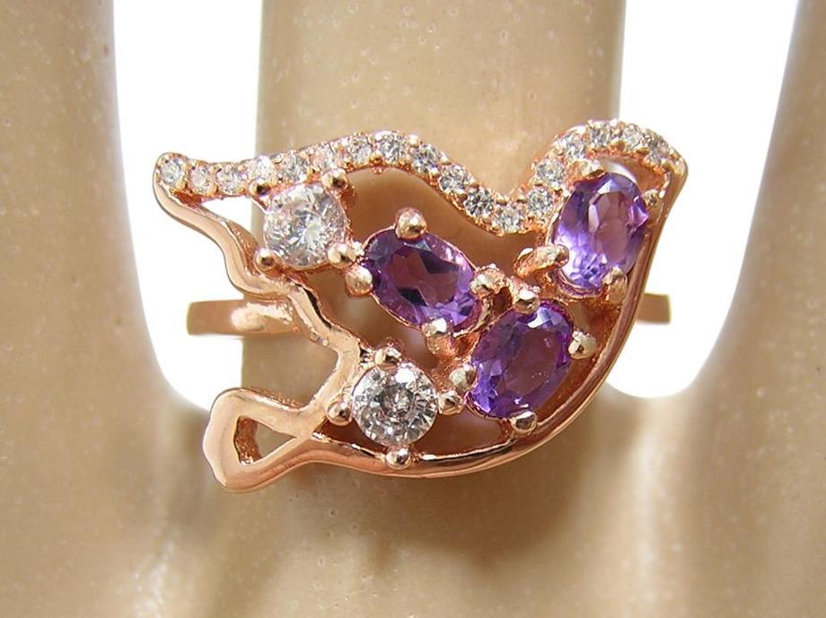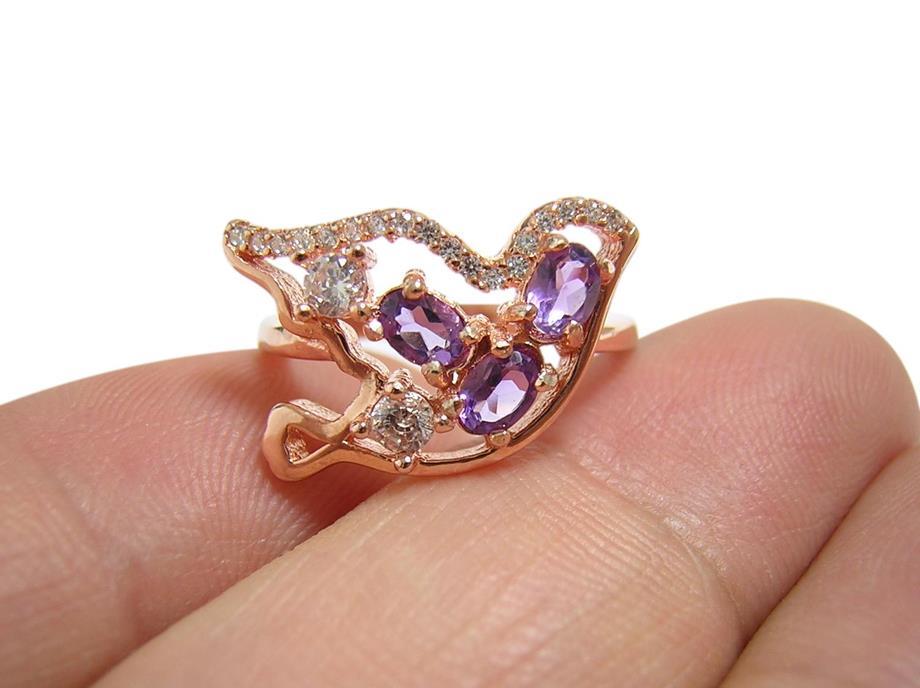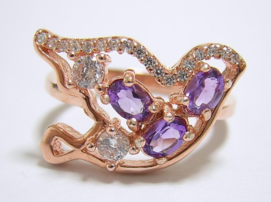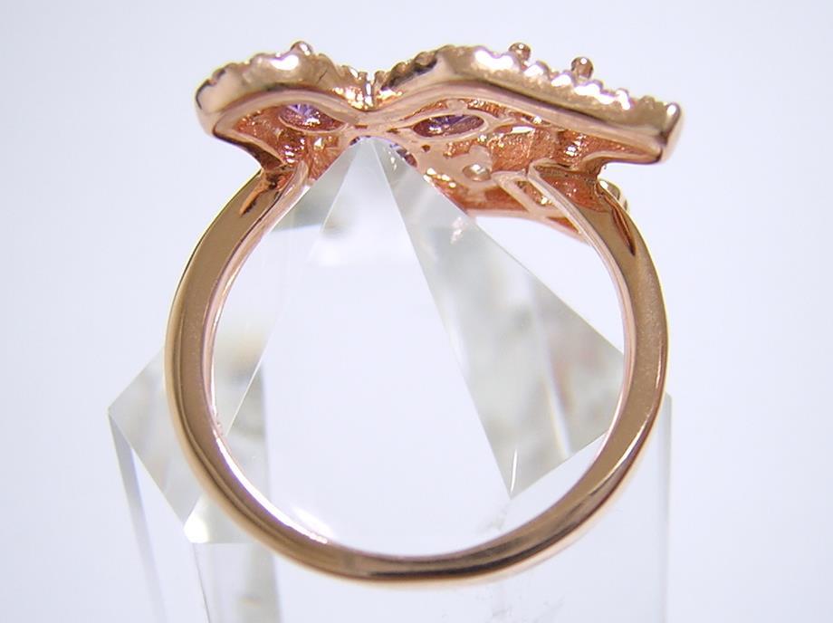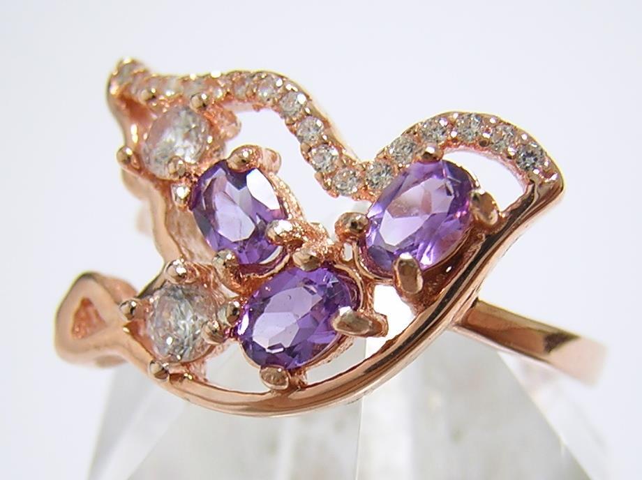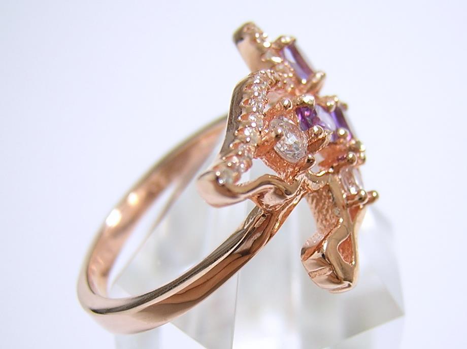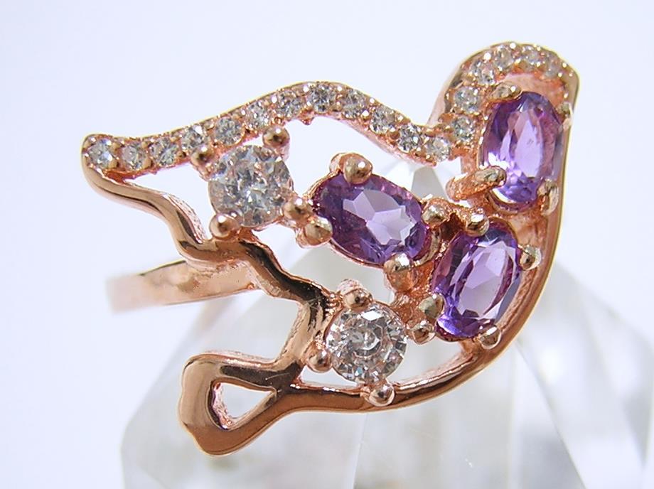 ブラジル産の天然アメジストとキュービックジルコニアを使用したデザインリングです。 【中石】天然アメジスト 【産地】ブラジル産 【処理】非加熱 【カット】オーバルファセットカット 【脇石】キュービックジルコニア 【重さ】3.3g 【サイズ】11号 (お直しは承れません) デザイン部:縦13mm×横19mm 【素材】シルバー925 (14金ピンクゴールド仕上げ) 【刻印】925 【状態】新品 ※地金部分に製作時からの微細な小傷やスレがあります。 |