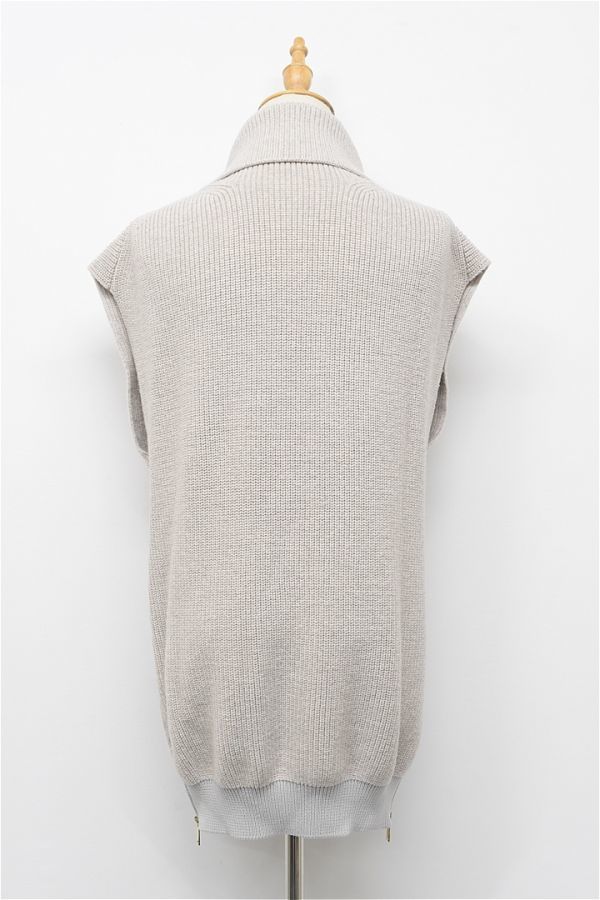 HGA-K296/美品 Stella McCartney ニット セーター ロング丈 ノースリーブ ハイネック サイドジップ ウール 36 S~M グレージュ
