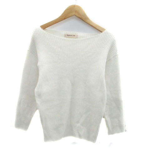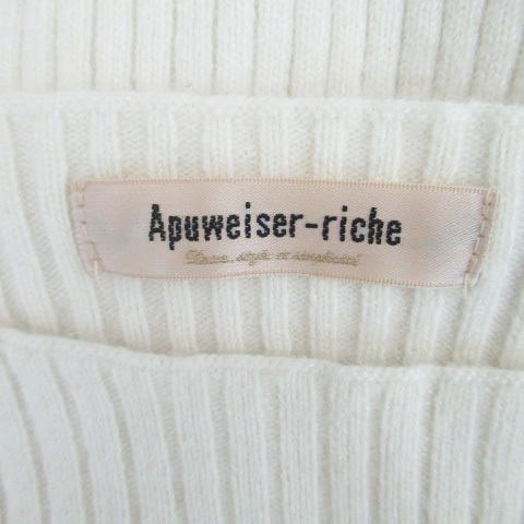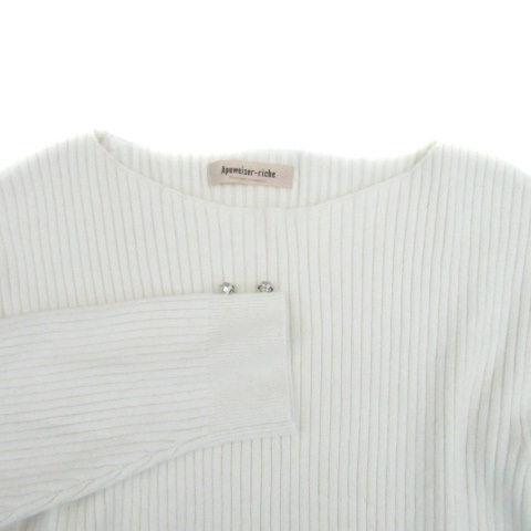 アプワイザーリッシェ Apuweiser-riche ニット カットソー リブ ラウンドネック 七分袖 ラインストーン ウール混 アンゴラ混 2 オフホワイト /HO10 レディース
