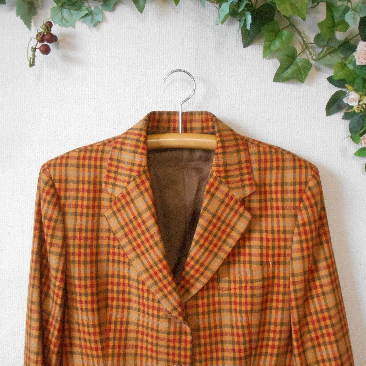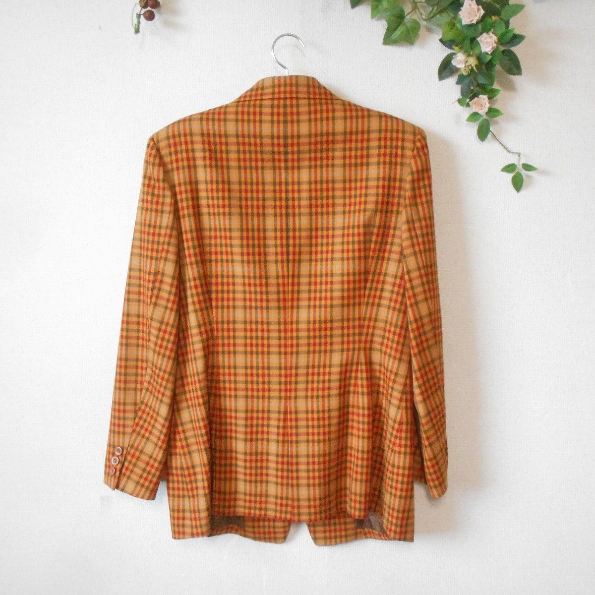 【ポイント】アツキオオニシのテーラードジャケットになります。お色は多色使用のチェック柄で秋冬を中心に着ていただけるお品です。肩パット入りのビックシルエットでレトロな雰囲気の一着です。