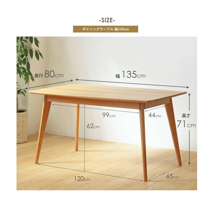 セット内容:ダイニングテーブル幅135cm×1台、ダイニングチェア×4脚