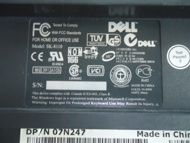 DELL製 パソコン用キーボード SK-8110ジャンク品の出品です。