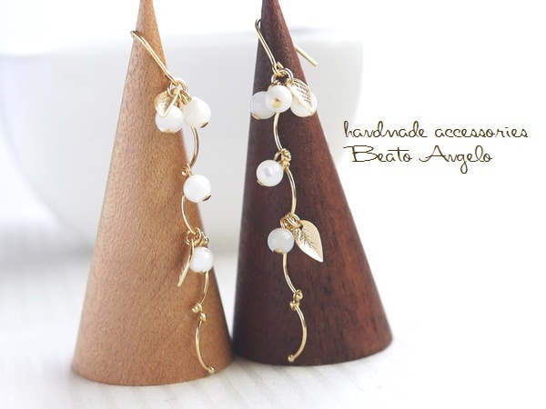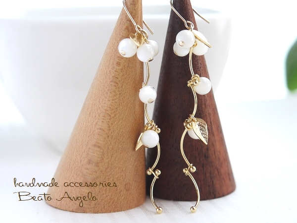 天然石マザーオブパールのウェーブピアス(p-129)G ミルク