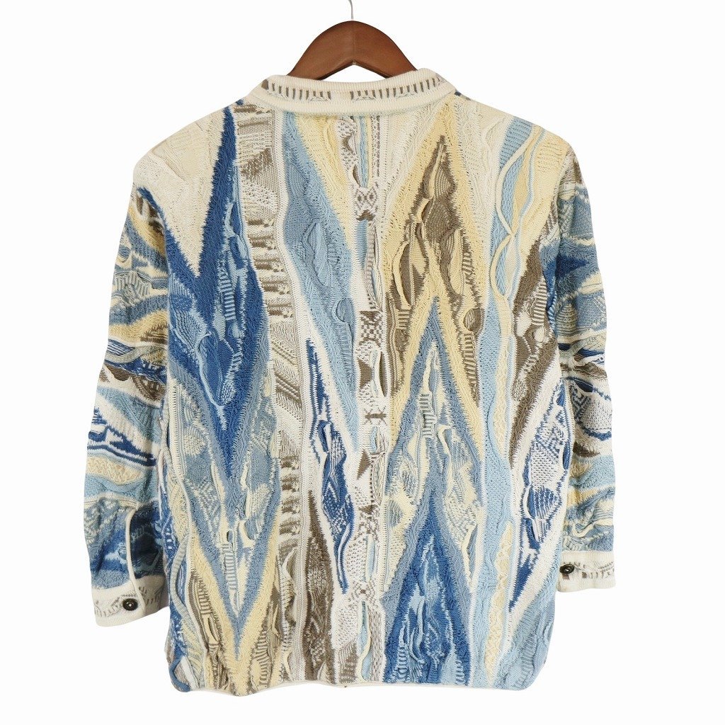 [商品管理番号] O5556 [ブランド] COOGI/クージー [表記サイズ] S [実寸サイズ] 肩幅:約43cm 着丈:約56cm 身幅:約51cm 袖丈:約37cm [素材] 表地 : コットン [色] マルチカラー [仕様] 90年代 襟付き3Dニット [状態] 汚れ:襟、袖、袖先、胸、腹部、腰、裾 | |||