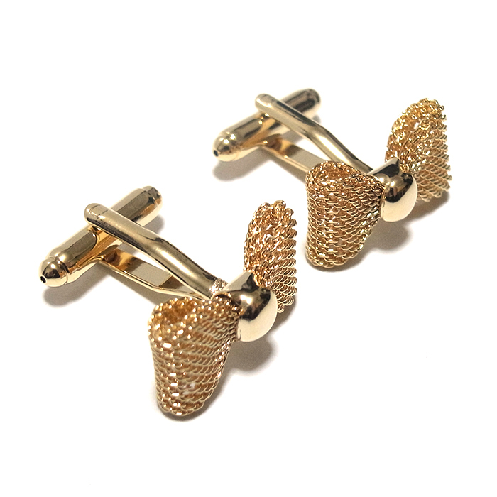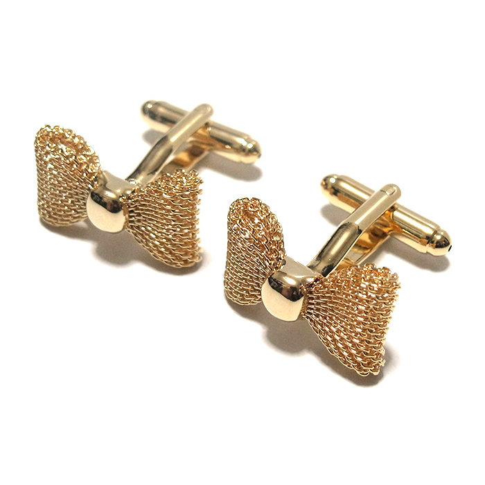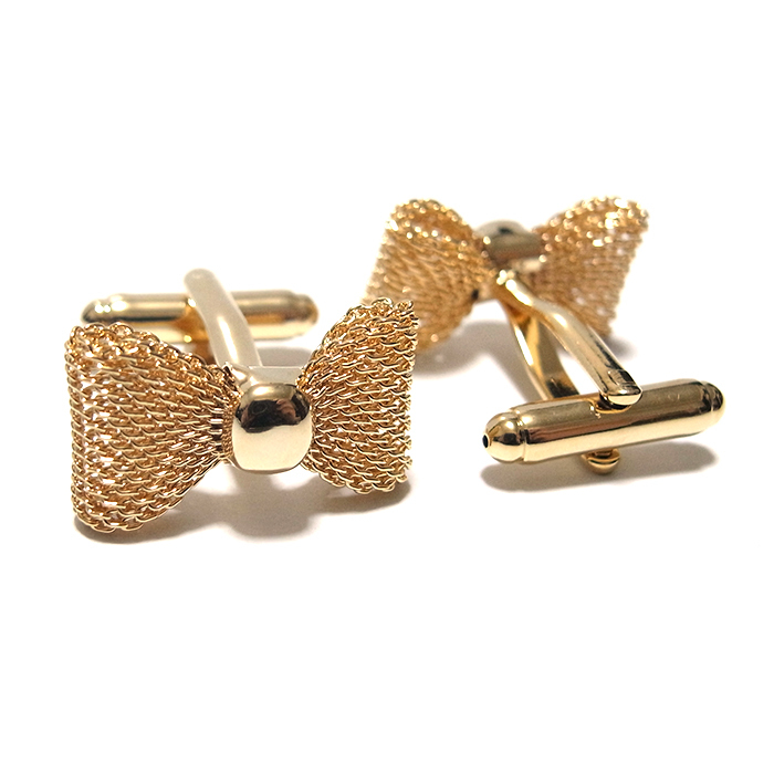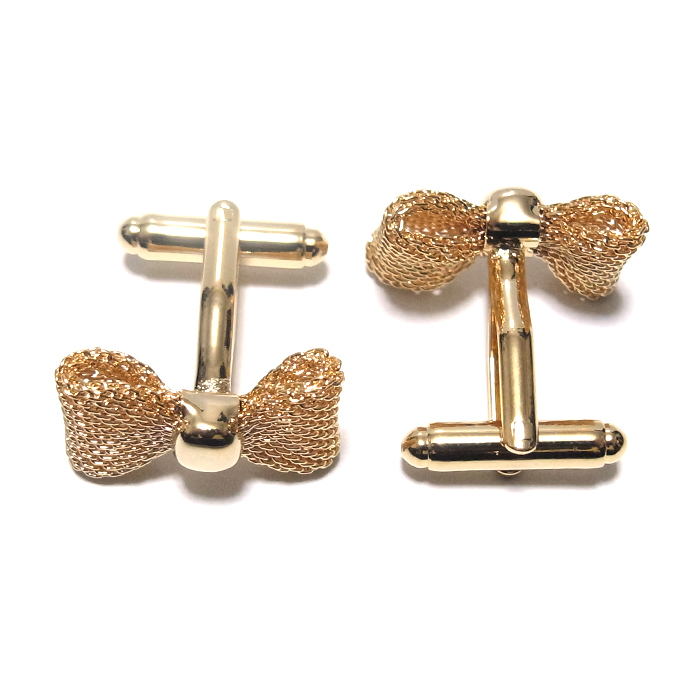 【カフス ボタン/カフリンクス】リボン 蝶ネクタイ風 ボウタイ ゴールド スーツ cuf-0547
