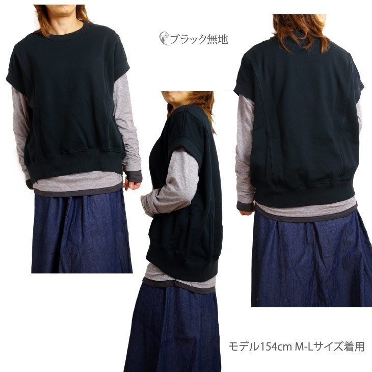 スウェット 半袖 裏毛 レディース トレーナー 日本製 オリジナル 無地 L~LL 黒 新品