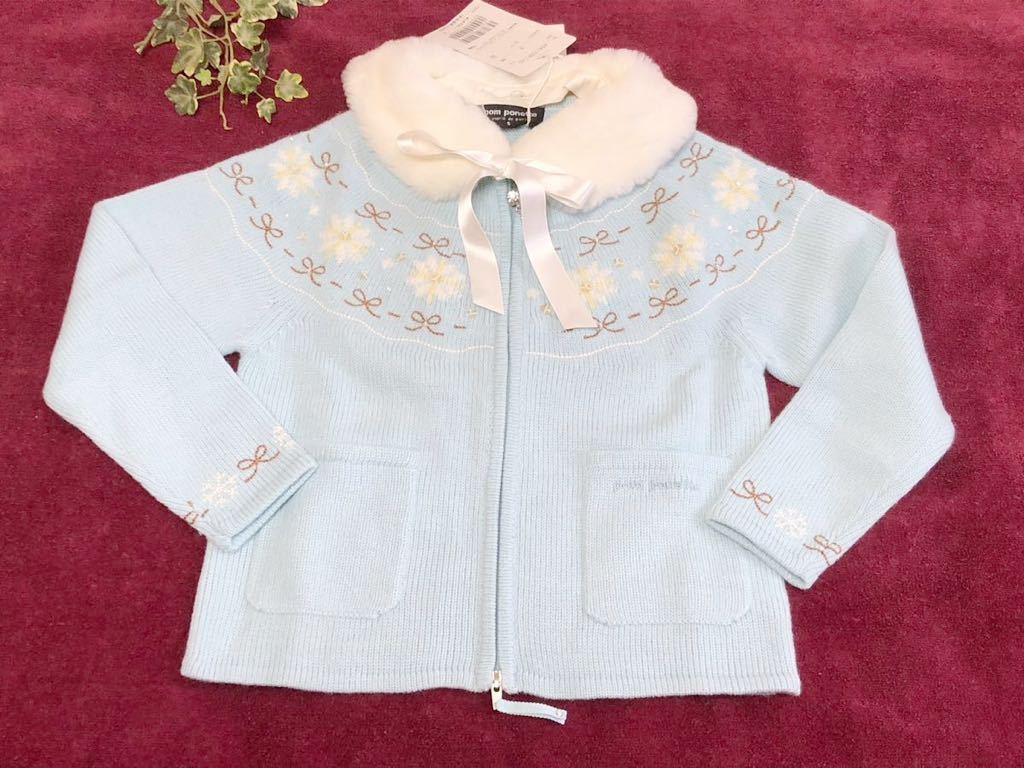 ★未使用 pom ponette ポンポネット サックス 水色 カーディガン トップス S 110★