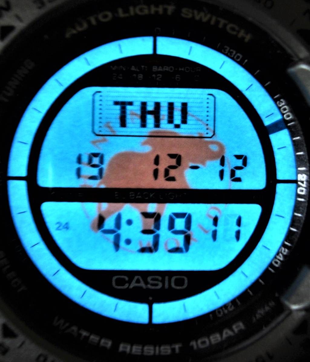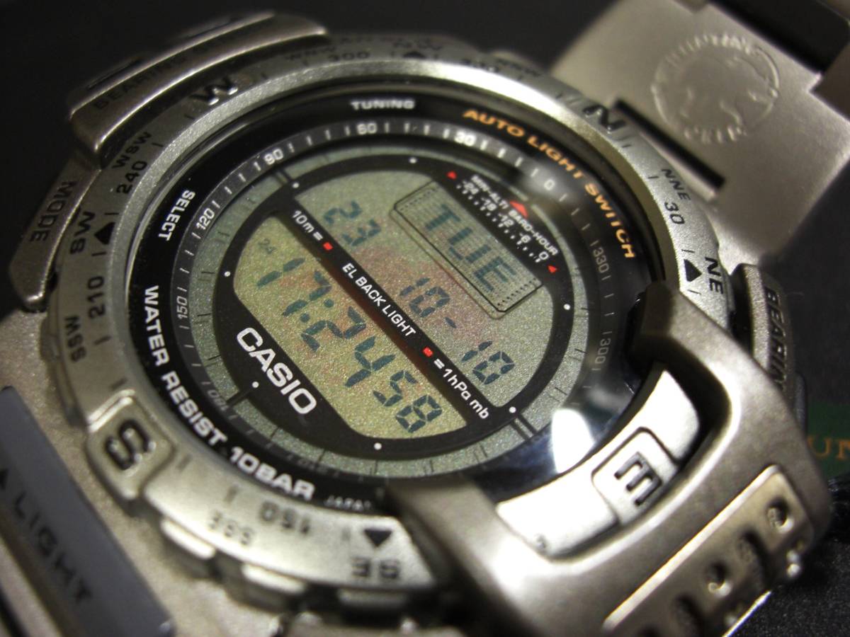 ★性能・・・クオーツ・10気圧防水・回転ベゼル・方位(コンパス)、気圧、高度、温度計測・ストップウオッチ・アラーム・フルオートカレンダー・ELバックライト・その他(詳しくは、カシオのホームページを御覧下さい。)