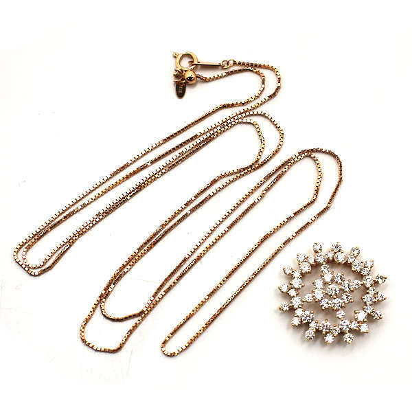 コメント | サークルと十字架風にダイヤモンドがあしらわれた、デザイン性の高いネックレス★ 首元に存在感を放ち、華やかかつ上品に飾ってくれます♪ K18という素材を使っておりますので、地金積立・ゴールド資産としてもオススメ! 中古品のため細かな擦れキズがあり、一般的な使用感があります。 普段使いにもおすすめ!いかがでしょうか? |