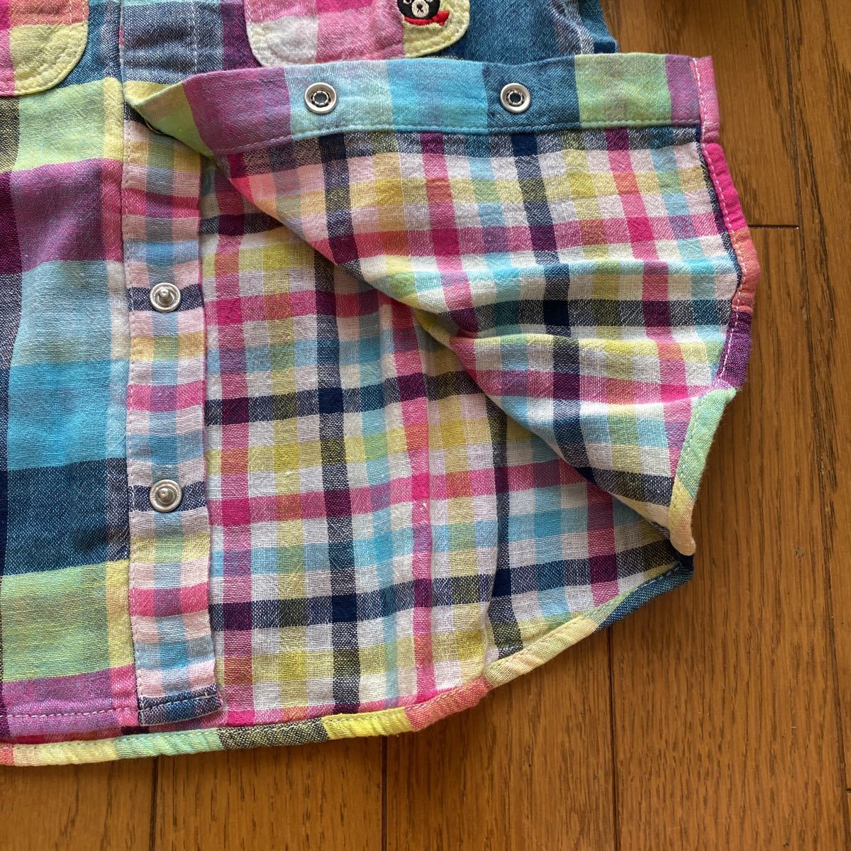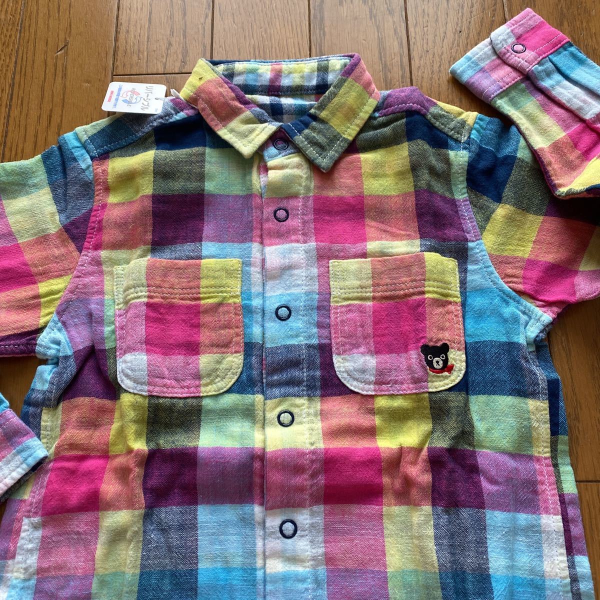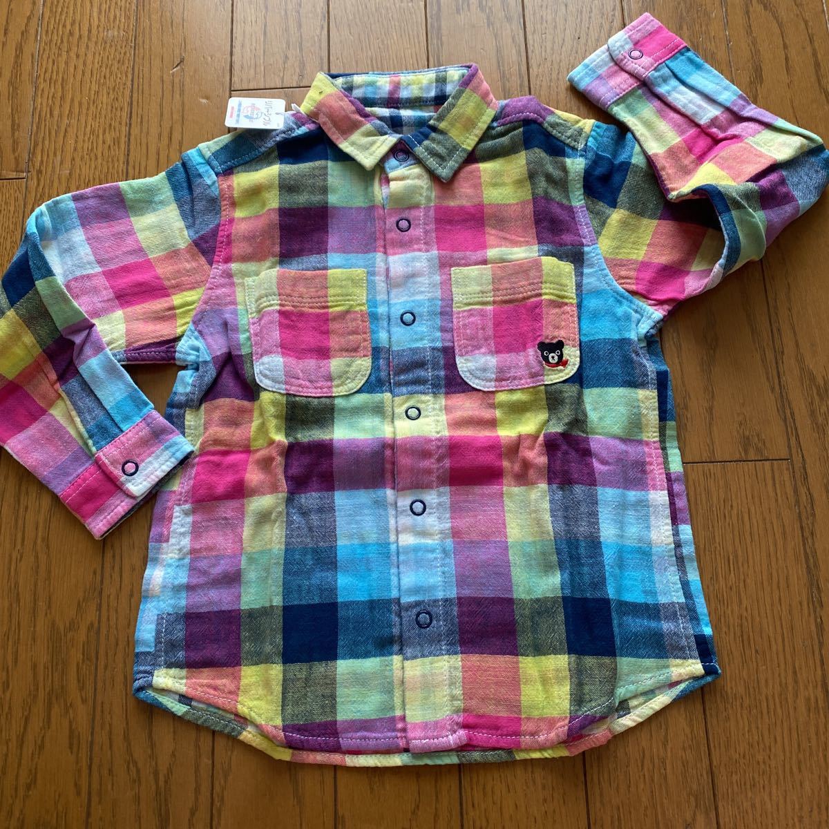 SALE 即決 新品 ミキハウス 長袖シャツ 110 リバーシブル チェック柄 スナップボタン DOUBLE.B