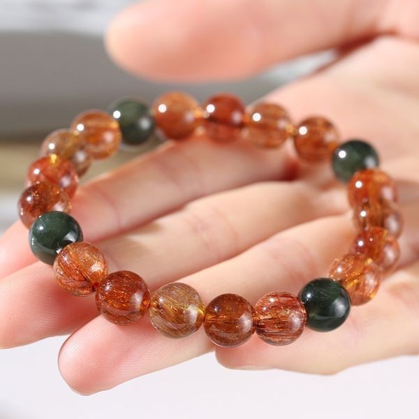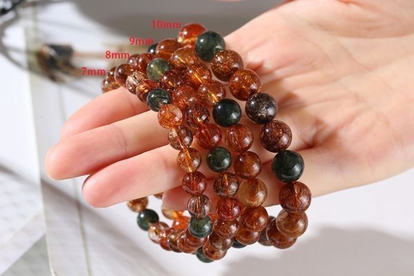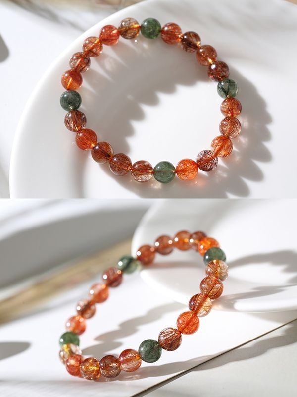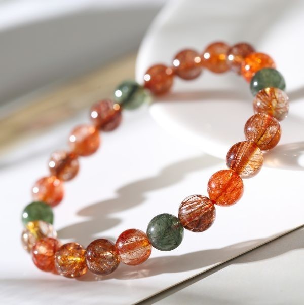 [EasternStar] 海外発送 福禄壽 水晶 ミックス ルチルクォーツ 赤 幸福 緑 吉祥 金 長寿 Rutile Quartz 特選 玉サイズ7mm 腕回り約16cm