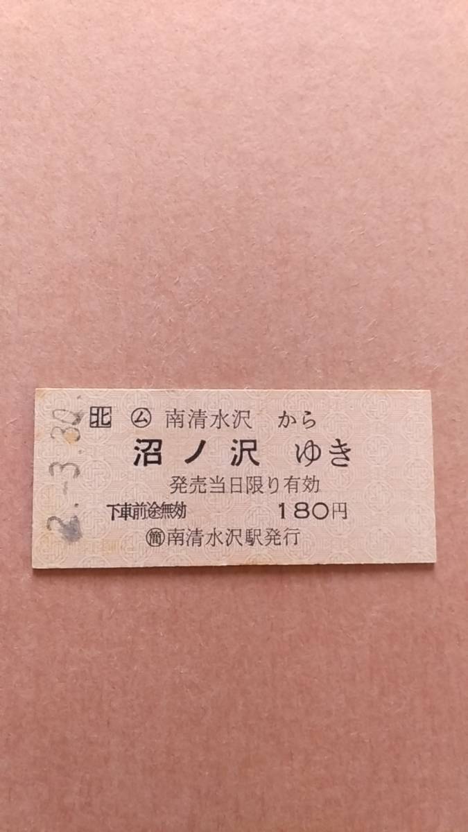 JR北海道 石勝線 (ム)南清水沢から沼ノ沢ゆき 180円 (簡)南清水沢駅発行