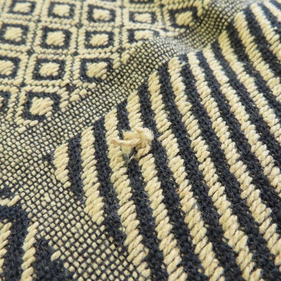 大きい穴や目立つ汚れなどは検品の際に確認していますが、織りムラ・色移り・ほつれ・ネップ・色ヤケ・ヨレ・シミ・小さい穴・補修跡などがある場合がございます。