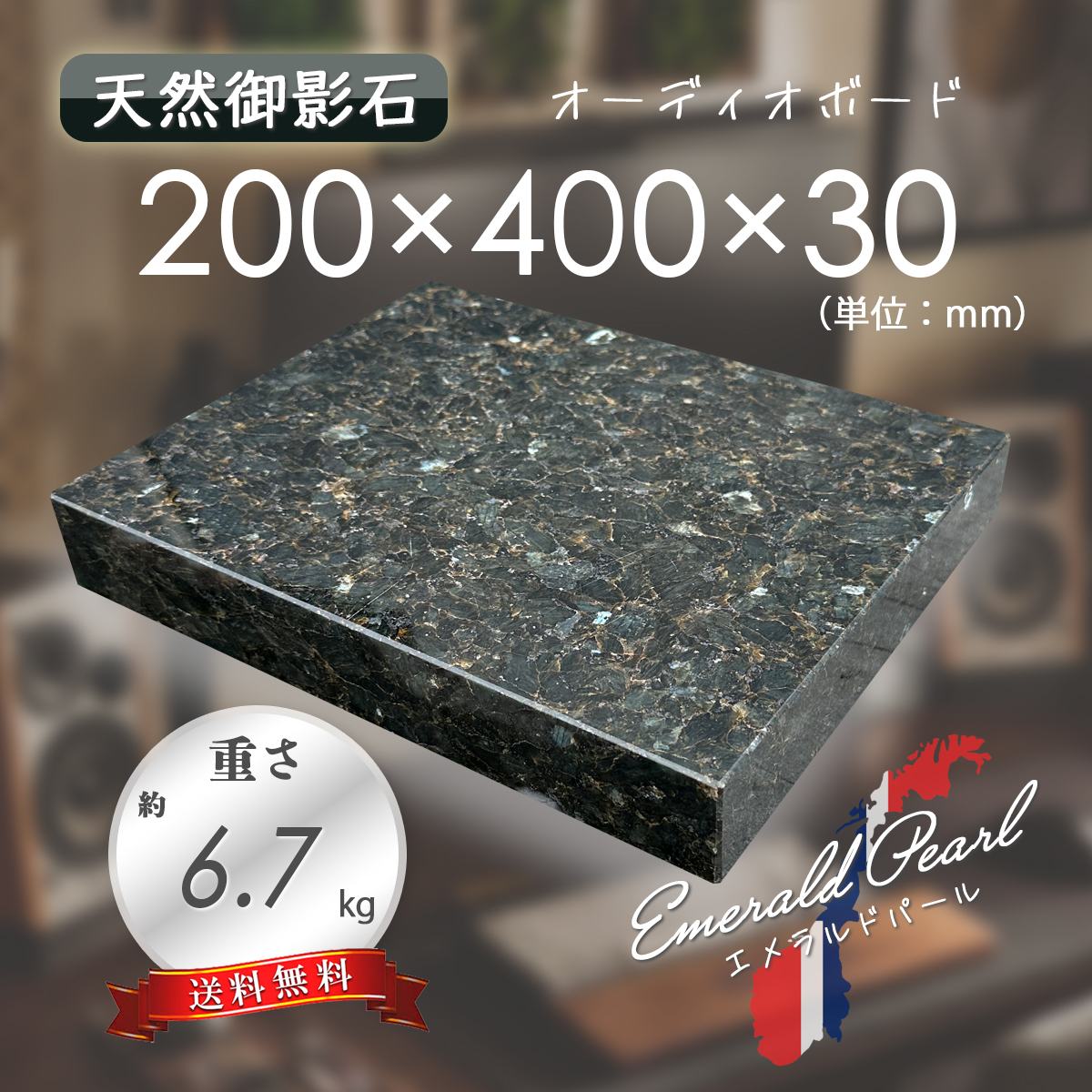 【高級天然御影石】 オーディオボード 天板 エメラルドパール 200mm×400mm×30mm 5面磨き 新品 即決 送料無料 ★超特価★