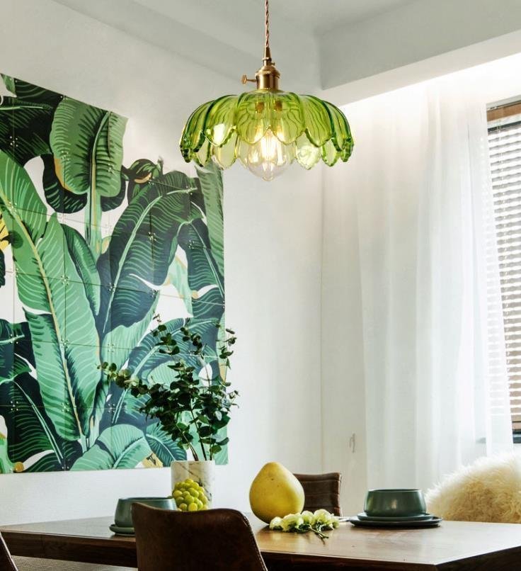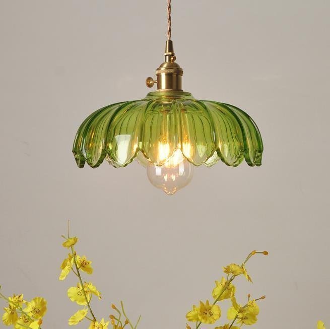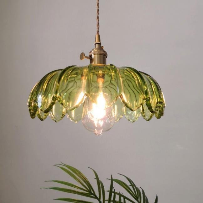 高級感◆美品☆ 青蓮シャンデリア 銅+ガラス製シャンデリア ペンダント/寝室用ランプ 照明 お洒落