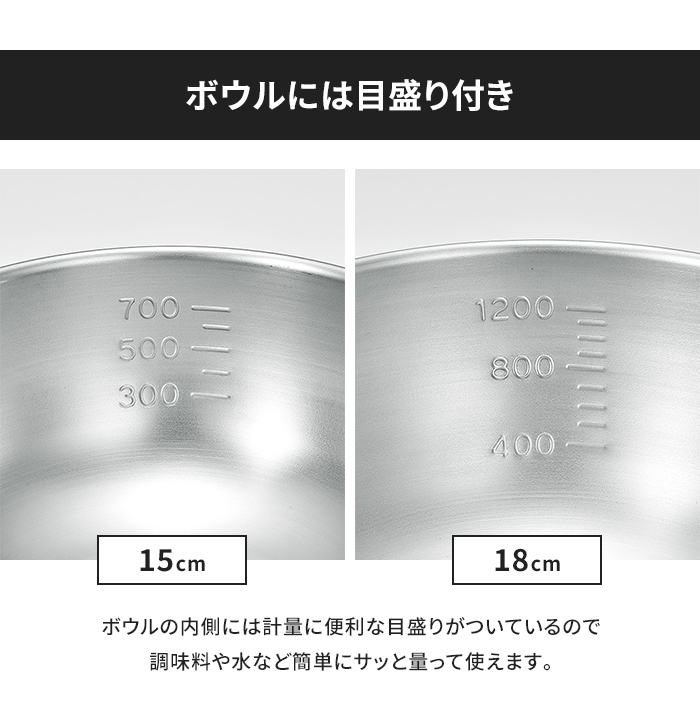 | [ボウル15cm]約1.0L [ボウル18cm]約1.6L |