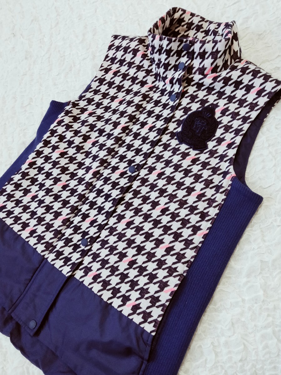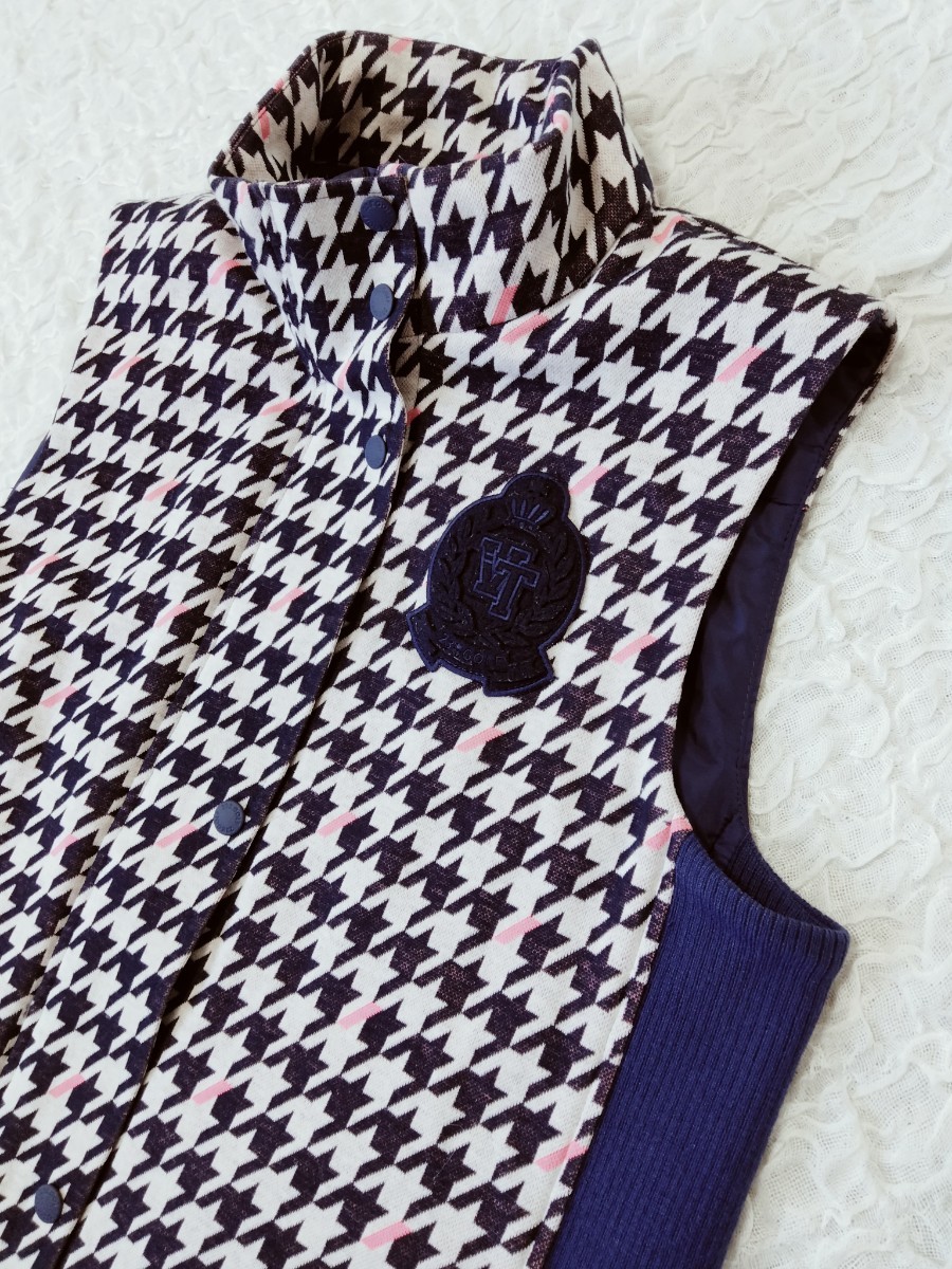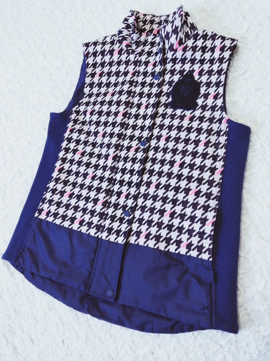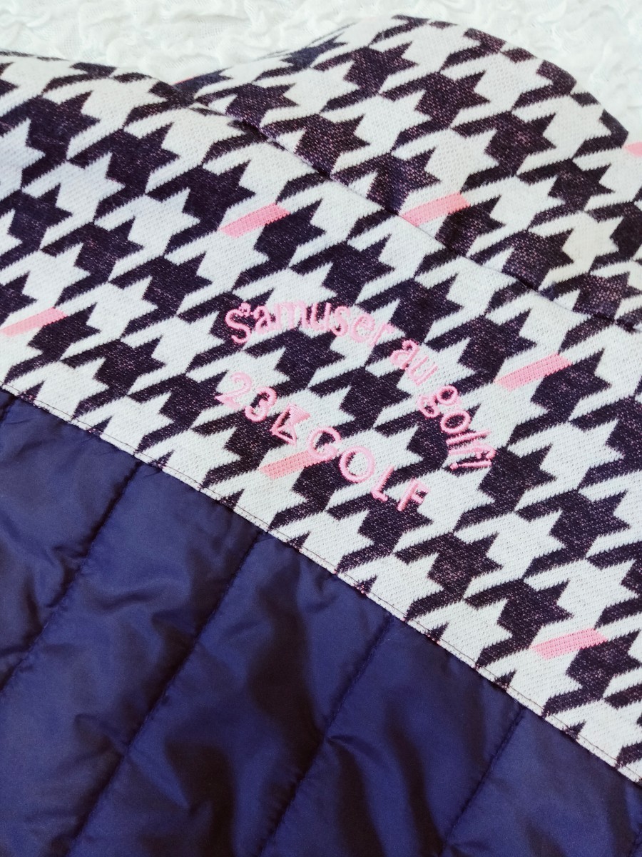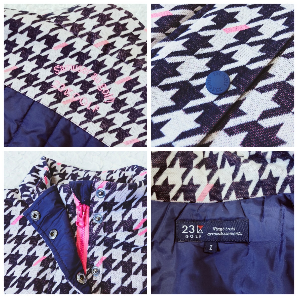23区GOLF*ベスト*オンワード樫山*千鳥格子*ネイビー*紺×ピンク*レディース*手洗い可*ニジュウサンクゴルフ*ゴルフウエア*ワッペン