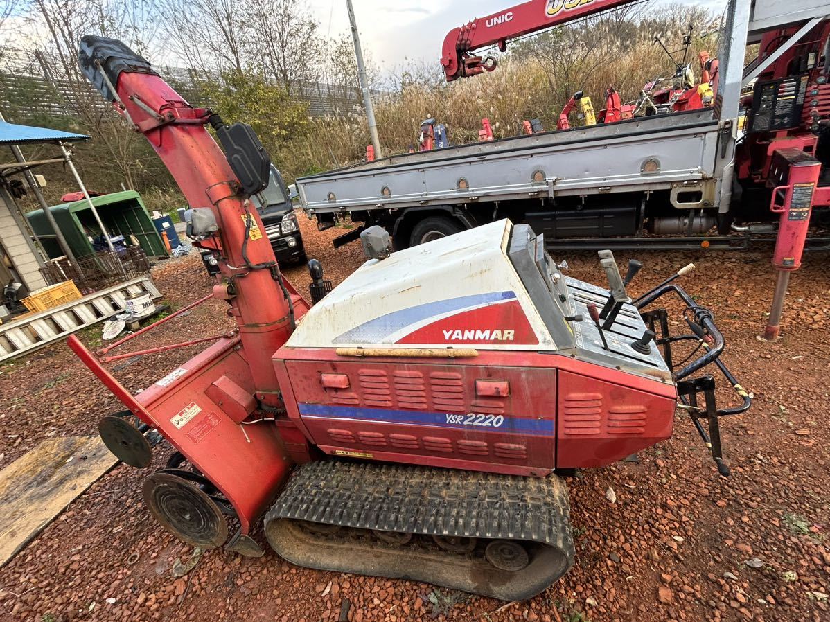 ヤンマー大型除雪機YSR22203気筒水冷22馬力ディーゼルエンジン2段オーガ、簡単整備しました。エンジンオイル、オイルフィルター、オーガギアケースオイル交換しました。各動作確認済みです。シューター新品LED作業灯付き!本体側LED球交換、爆光です。夜の除雪機作業も楽々になります。外観は錆、汚れ、色褪せなどございますが現状渡しになります。今年売れなくなったら来春塗装予定も有ります。エンジンはブロック破損した為コンバインエンジンに載せ替えした為実際作業する時に回転数落ちるに気にします。一応除雪作業は出来ますが元により飛ばす距離が近いかも知りませんが現状渡し優先です。このままでよろしいなったらお得になると思います。クローラーは多少ひび割れ有りますがまたまた使える程度と思います。オーガの山は減っていますが写真ご参照お願い致します。中古機械になりますが現物確認大歓迎です。ノークレーム、ノーリータンでお願い致します。当方はご自宅まで配送も対応致しますのでご必要なら是非送料のご相談ください。お引き取りも問題有りませんが軽トラ以上のトラックでお願い致します。