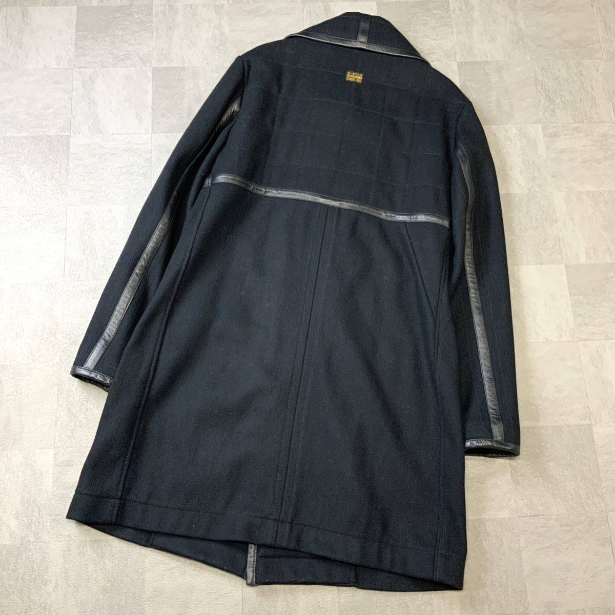 美品 G-STER RAW ジースターロゥ デザイン ダッフルコート メンズ Lサイズ ブラック ウール アウター