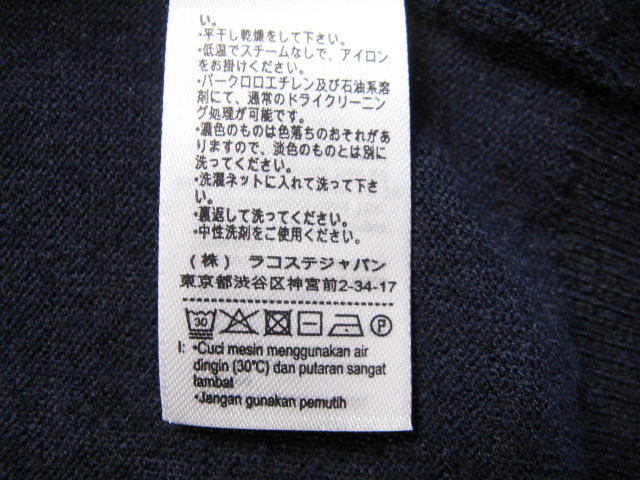 LACOSTE ラコステ ハイゲージ クルーネックセーター サイズ4(US-M) 紺
