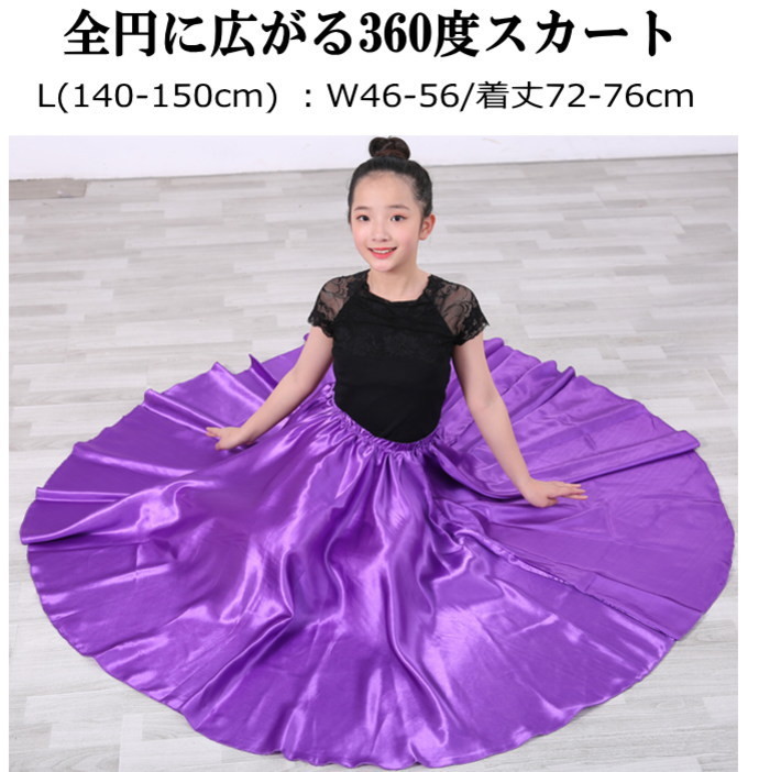140-150cm パープル L ダンス 衣装 キッズ ヒップホップ スカート ロング サテンスカート 光沢 ステージ衣装 cy134-cy135-pa