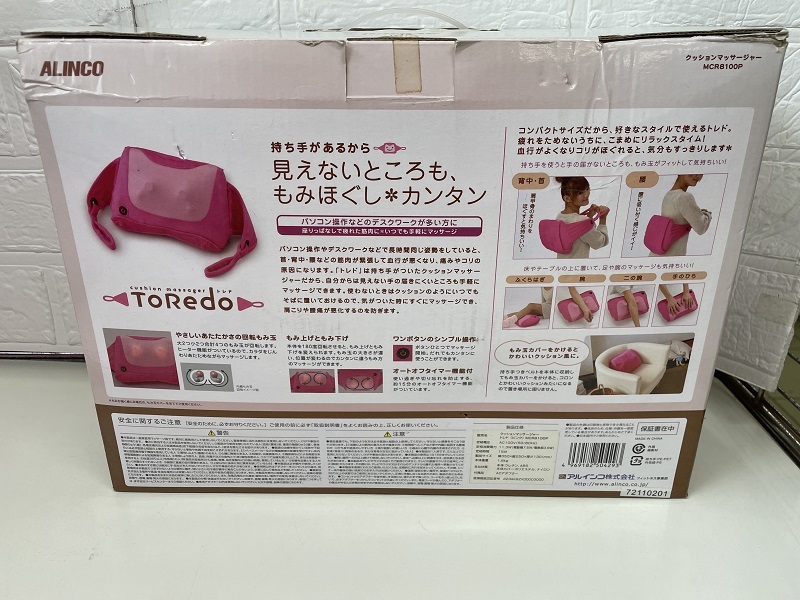 | Y【中古品】ALINCO アルインコ クッション マッサージャー トレド MCR8100P ピンク もみ玉 ローリング ヒーター機能付き | ||