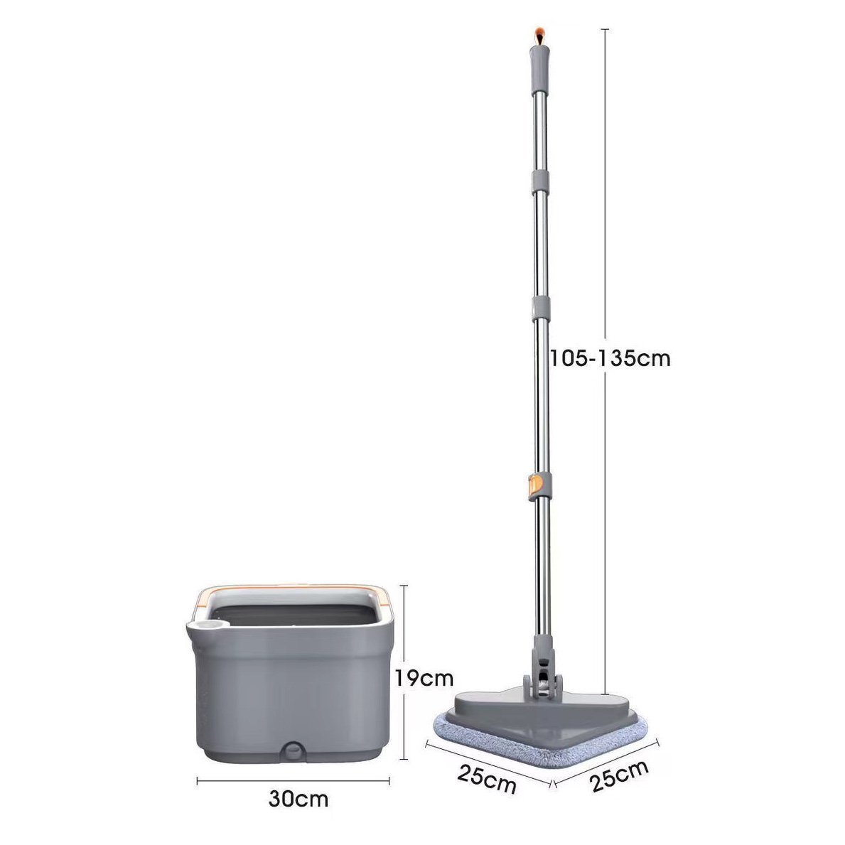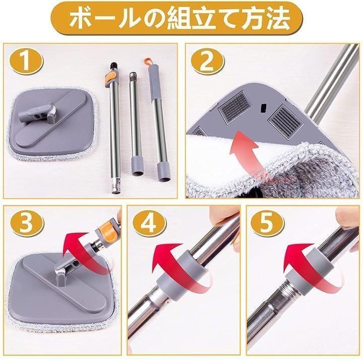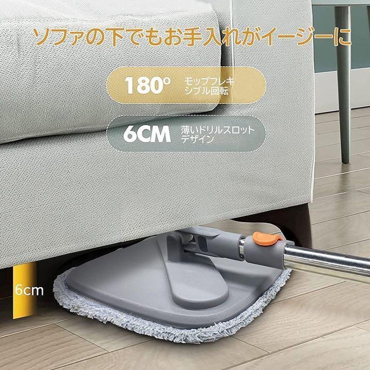 伸縮可能掃除モップ バックルで使用者や掃除場所によりハンドルの長さ(100~135cm)は調節可能、腰を大変に曲げる必要なくお気軽に掃除。ヘッドの部分は360回転でき、家具の下など手を届けにくい場合にもらくらくです。