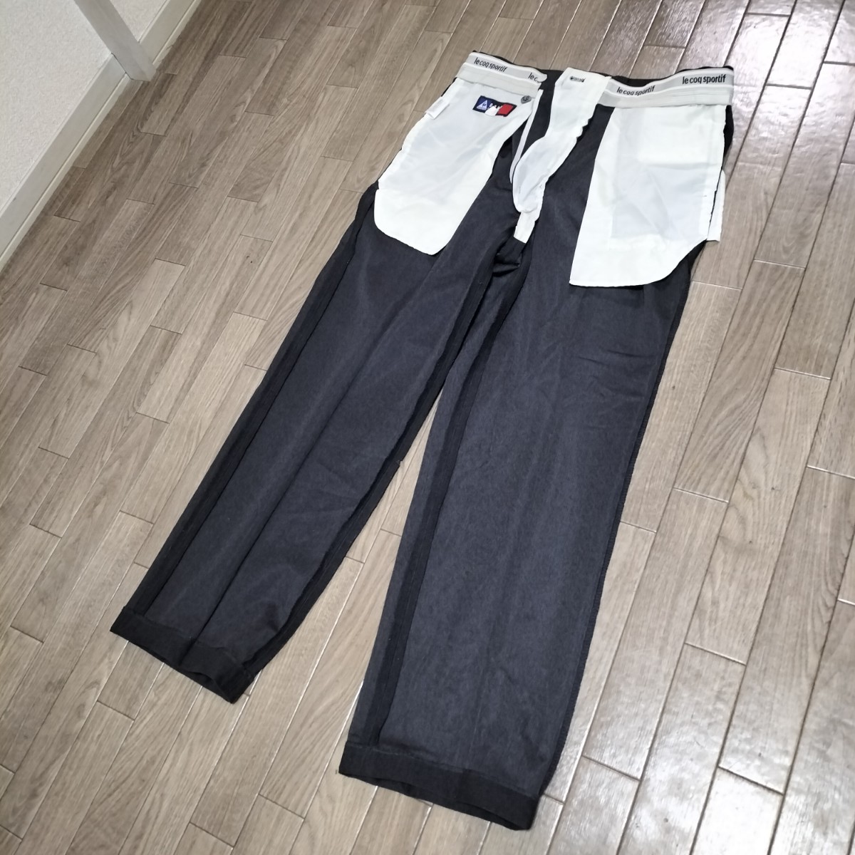 ★le coq sportif Golf COLLECTION GQ8041 スラックス パンツ 2タック ボトムス 刺繍ロゴ グレー 灰 メンズ W30〜32 テック ルコック ゴルフコレクション 古着 USED